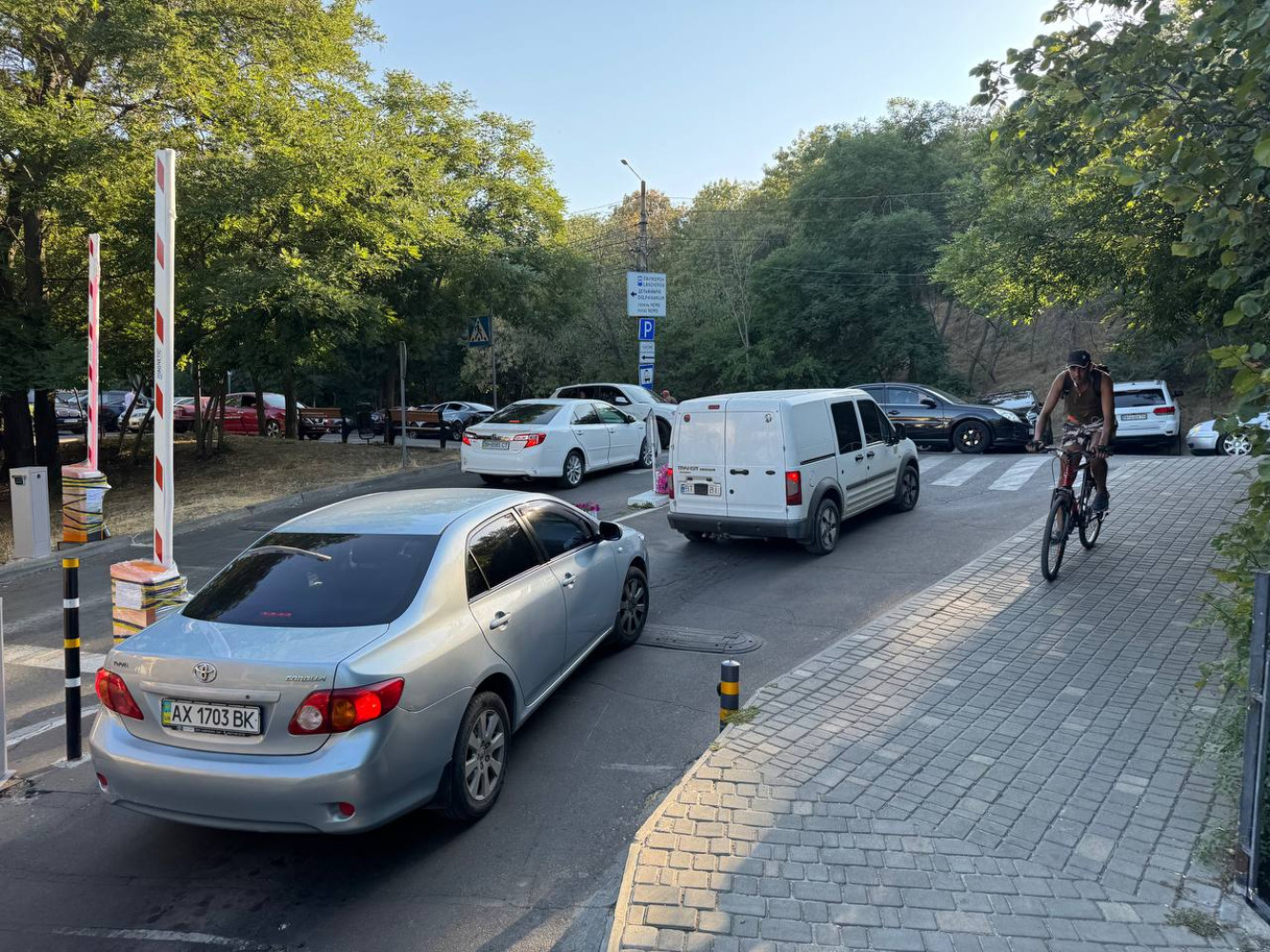Ситуація з паркуванням на одеському узбережжі, зокрема на Ланжероні, наближається до колапсу після недавнього рейду правоохоронців. Вони опечатали шлагбауми приватних парковок, за нібито незаконну роботу, в результаті сьогодні всі бажаючі спускалися вниз на своїх авто, і не знайшовши на безкоштовних парковках вільних місць, просто кидали машини де попало.