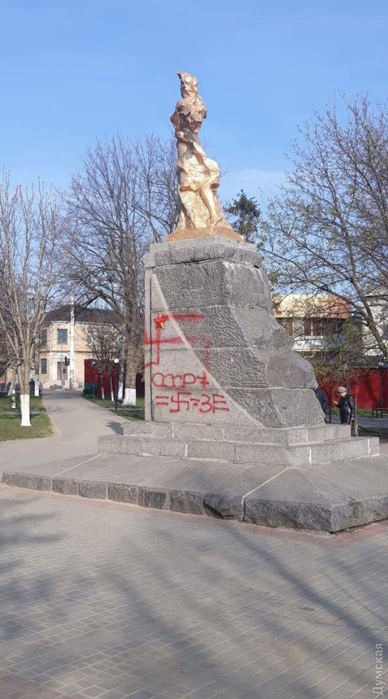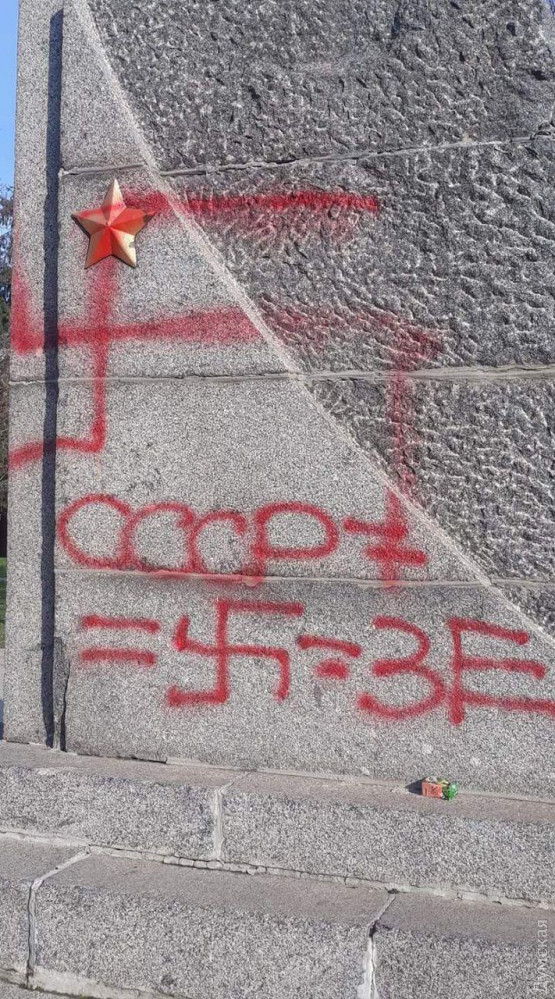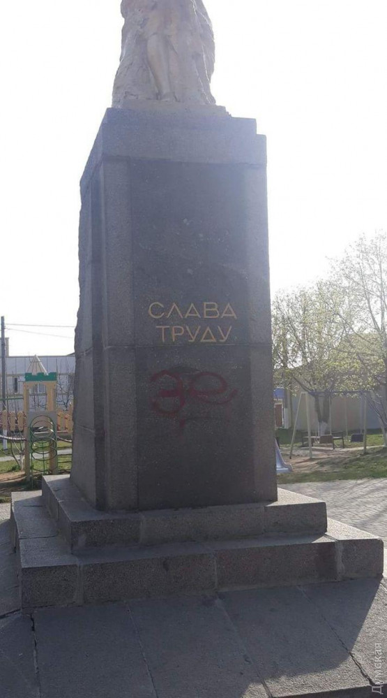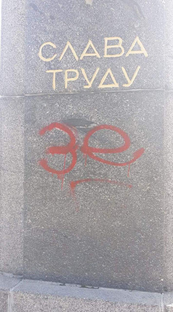 «Зе», «СССР» и свастика: в Одесской области неизвестные разрисовали памятник труду