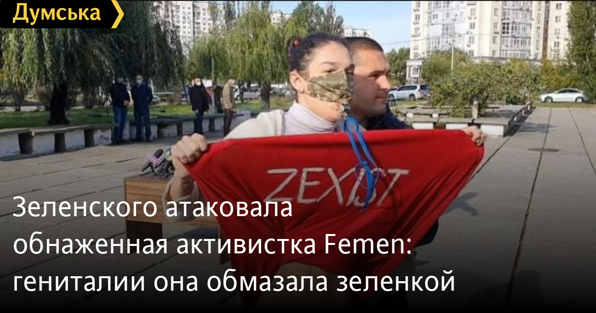Зеленского атаковала обнаженная активистка Femen: гениталии она обмазала зеленкой