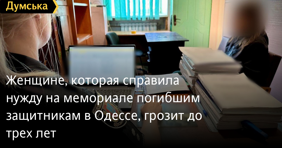 Жінці, яка справила нужду на меморіалі загиблим захисникам в Одесі, загрожує до трьох роківДо трьох років позбавлення волі загрожує жінці, яка наприкінці травня справила нужду на меморіалі загиблим захисникам, встановленому на Європейській площі в Одесі, і підтерлася українським прапором. Як повідомили у пресслужбі поліції області, місцева 28-річна мешканка визнала свою провину. Їй висунули обвинувачення в публічній нарузі над прапором (ч. 1 ст. 338 КК України) і хуліганстві (ч. 1 ст. 296 КК України). Порушниці загрожує штраф від 17 до 68 тис. гривень, або позбавлення волі до трьох років. Обвинувальний акт уже скерували до суду. Нагадаємо, інцидент стався 24 травня. Помітили помилку? Виділяйте слова з помилкою та натискайте control-enter |