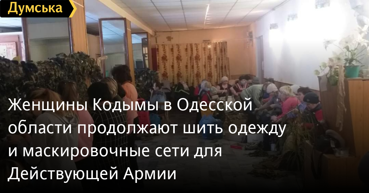 Женщины Кодымы в Одесской области продолжают шить одежду и маскировочные сети для Действующей АрмииЖители города Кодыма на севере Одесской области продолжают вести активную волонтерскую деятельность. Сейчас они плетут маскировочные сети и шьют предметы одежды для военных Действующей Армии. Сетки отправляют в пропускной пункт села, пограничникам и на блокпосты вокруг Кодымы и не планируют останавливаться. «Если нужно, наплетем еще!» — пишет одна из кодымчанок. По ее словам, горожане уже обеспечили 13 своих солдат срочной службы всем необходимым — бельем, носками, свитерами, шапками, гигиеническими средствами. Подштанники для военных пошили в местном швейном цехе — он, кстати принадлежит переселенцу, который приехал в Кодыму в 2014м году. «Сейчас шьют парням трусы из ткани, которую приносят местные жители. Уже пошита большая партия. Поделимся с нашей Рыцарской бригадой», — предлагают кодымчане. Также в городе проводят курсы по оказанию первой помощи. СМЕРТЬ РОССИЙСКИМ ОККУПАНТАМ! Заметили ошибку? Выделяйте слова с ошибкой и нажимайте control-enter |