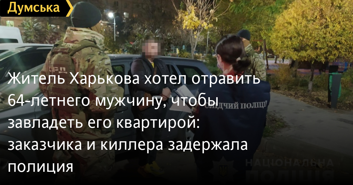 Житель Харькова хотел отравить 64-летнего мужчину, чтобы завладеть его квартирой: заказчика и киллера задержала полицияЗаказное убийство предотвратили полицейские в Харькове. Как сообщает пресс-служба МВД Украины, заказчика убийства и не состоявшегося киллера задержали в ходе спецоперации. Злоумышленники планировали убить мужчину, чтобы завладеть его квартирой. По данным следствия, харьковчанин заказал убийство 64-летнего владельца квартиры, на которую был оформлен договор пожизненного содержания. Полиция установила, что расправиться с пенсионером и завладеть его квартирой решил родной брат сиделки, который нашел человека, согласившегося совершить убийство. Они планировали отравить его во время совместного застолья. Решается вопрос об избрании меры пресечения подозреваемым в виде содержания под стражей без права внесения залога. СМЕРТЬ РОССИЙСКИМ ОККУПАНТАМ! Заметили ошибку? Выделяйте слова с ошибкой и нажимайте control-enter |