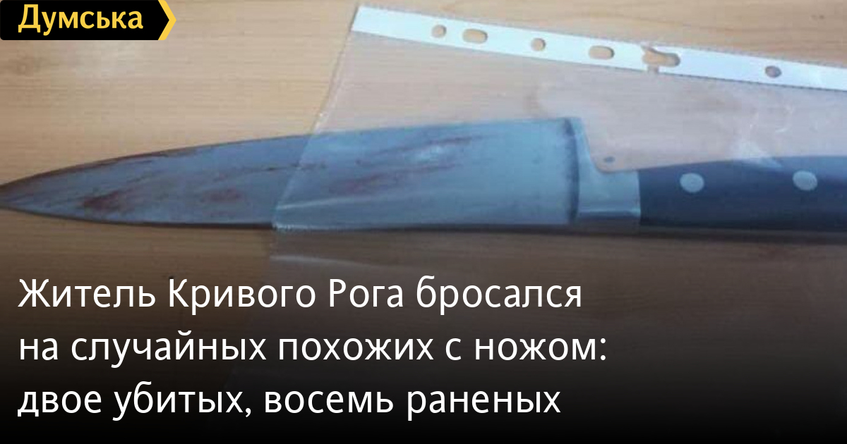 Житель Кривого Рога бросался на случайных похожих с ножом: двое убитых, восемь раненыхДвое человек убиты и восемь ранены в результате уличного нападения неадекватного 29-летнего жителя Кривого Рога. Как сообщили в пресс-службе ГУНП в Днепропетровской области, вчера около 15:20 мужчина бросался на случайных прохожих с ножом в Металлургическои районе города. Среди пострадавших есть восьмилетний мальчик. Двое человек погибли на месте, восьмерых доставили в больницу. Мужчину задержали и доставили в Криворожский отдел полиции. После задержания он заявил, что убить людей ему приказал «голос Бога». Задержанному предъявили подозрение по ч. 2 п. 1 ст. 115 (умышленное убийство) и ч. 2 ст. 15, ч. 2 п. 1, 2 ст. 115 УК Украины (покушение на умышленное убийство). В настоящее время правоохранители выясняют все обстоятельства трагедии. На преступление отреагировал президент Владимир Зеленский, который родом из Кривого Рога. «Не сомневаюсь, что события в Кривом Роге являются проявлением абсолютного терроризма — по смыслу, по сути, по последствиям, по ужасу, который пришел в наши дома, — написал Зеленский. — Даже если по Уголовному кодексу это конкретное преступление будет трактовано иначе. Но именно так — это терроризм, варварский способ запугать людей. Поэтому никакого оправдания и никакого снисхождения к уродам рода человеческого». Заместитель министра внутренних дел Антон Геращенко в свою очередь отметил, что задержали молодого человека в момент, когда тот пытался напасть на женщину с малолетним ребенком. Замминистра сообщил, со слов родственников убийцы, что тот ездил в Чехию на заработки, а через год вернулся оттуда «другим человеком». «Стал говорить о каких-то демонах. Но не вел себя агрессивно», — написал Геращенко. Полиция в доме убийцы на стенах нашла мистические символы и концентрические рисунки. Трактовать их будут эксперты в психиатрии. Когда мужчину задерживали, он ответил, что родился в аду, а убийство совершил, чтобы показать людям, что они тоже в аду. СМЕРТЬ РОССИЙСКИМ ОККУПАНТАМ! Заметили ошибку? Выделяйте слова с ошибкой и нажимайте control-enter |