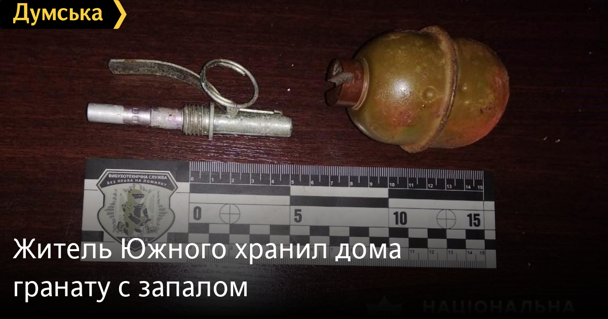 Полицейские изъяли взрывоопасный предмет у 45-летнего жителя Южного — он хранил дома гранату РГД-5 с запалом. Об этом сообщили в пресс-службе ГУНП. По данному факту начато уголовное производство по ч. 1 ст. 263 Уголовного кодекса Украины. Изъятое направлено на экспертное исследование. Досудебное расследование продолжается. СМЕРТЬ РОССИЙСКИМ ОККУПАНТАМ! Заметили ошибку? Выделяйте слова с ошибкой и нажимайте control-enter |