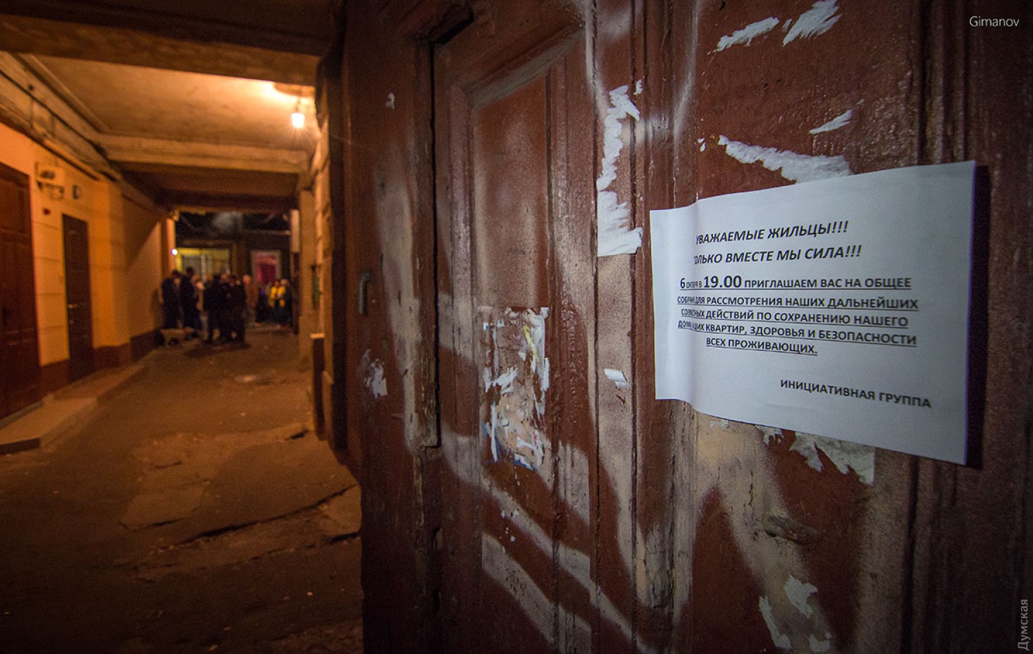 «Наш дом последний раз ремонтировался 50 лет назад, — рассказал «Думской» глава группы Василий Козубенко. — Все это время мы честно платили городу, в том числе и на текущий ремонт, но не делалось ничего. Теперь город разрешил строить рядом с нами семь высоток. Наш дом построен в 1820 году (на самом деле, в 1880-х, — Ред.), и он просто рассыплется».