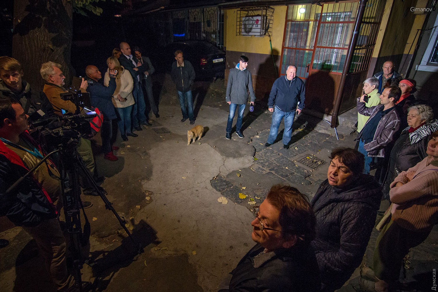 Вчера вечером во дворе памятника архитектуры по адресу Еврейская, 1, где жил известный писатель и журналист, идеолог сионизма, создатель Еврейского легиона и один из руководителей террористической организации «Иргун» Владимир Жаботинский, состоялось собрание инициативной группы.