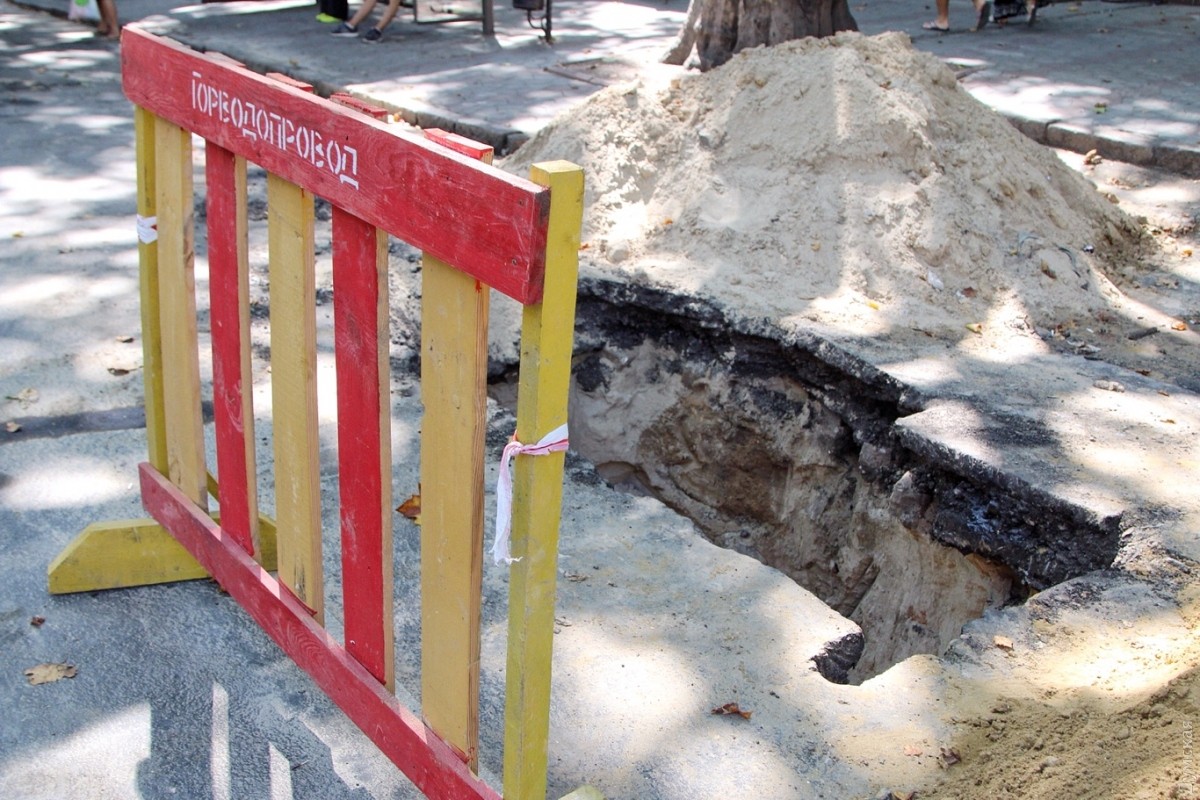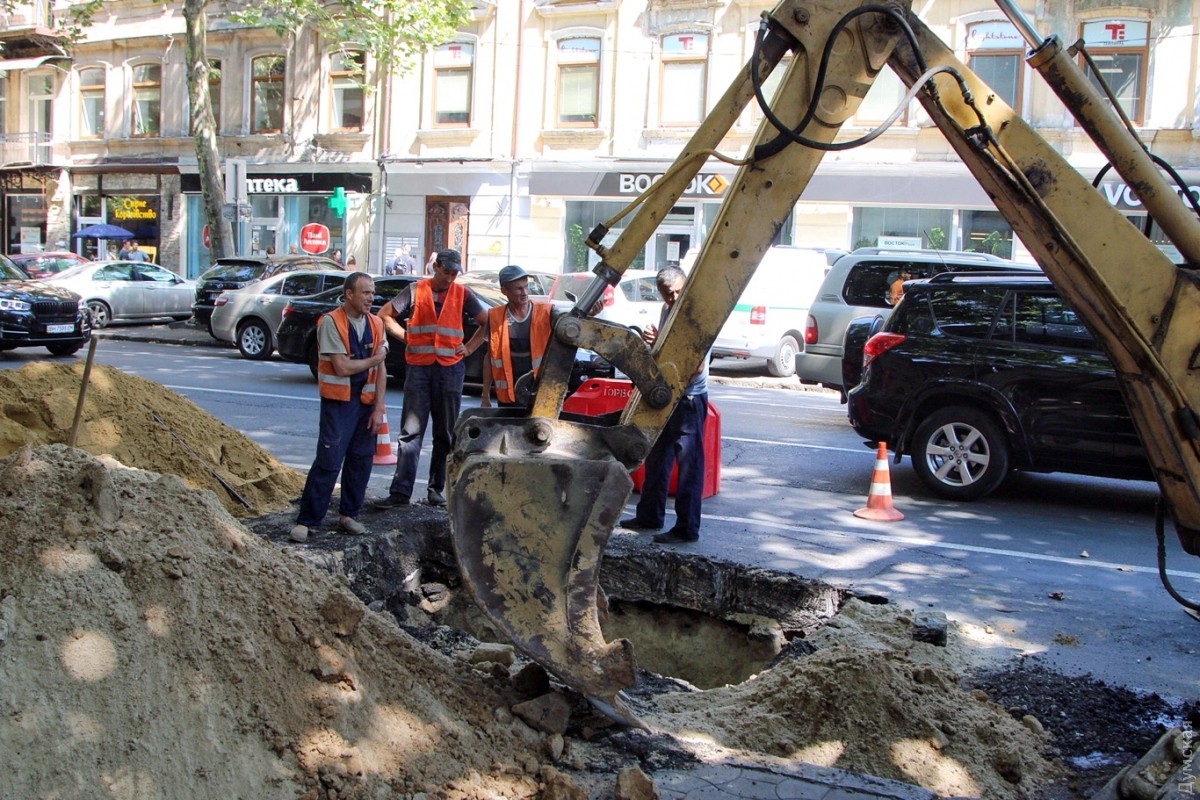 В настоящее время произведены раскопки на проезжей части Екатерининской и на перекрестке Троицкой и Ришельевской. Работники службы сканирут шумы в земле с помощью специального прибора, чтобы выявить течь, но пока результата нет.