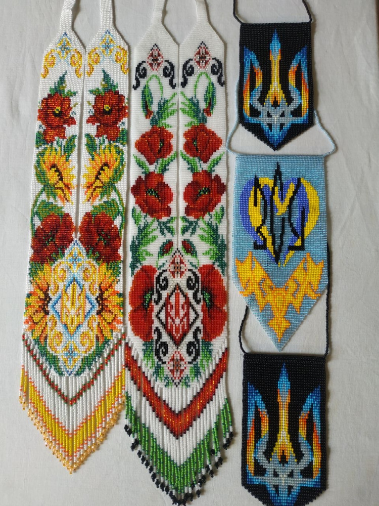 Мешканка Рені плете українські гердани з бісеру та відтворює орнаменти Одеської областіМешканка Рені Наталя Воронова ось уже 15 років створює гердани в українській тематиці. Сьогодні ці строкаті прикраси на шию користуються великою популярністю. Про те, чим цікавий цей вид рукоділля, і якою символікою володіють гердани — читайте у матеріалі «Думської». Ще рік тому Наталя працювала хормейстером у Центрі національних культур міста Рені Одеської області, керувала кількома вокальними ансамблями, та й сама співала, як сольно, так і в колективах. Однак після початку повномасштабної війни працювати, як колись, жінка не змогла — будь-яка більш-менш емоційна пісня тепер звучала для неї інакше, стискала горло і викликала сльози. «Пам'ятаю, раніше я зі своїм учителем репетирувала пісню «Алексей, Алешенька, сынок» і ми обидві постійно плакали. Потім я звикала і виходила на сцену, вже впоравшись зі своїми почуттями. А зараз не можу впоратися. Намагалася співати «Там біля тополі калина росте», але сльози не зупиняються, бо ми в цьому живемо!» — каже Наталя. Вимушено покинувши улюблену роботу, Наталя повністю присвятила себе плетінню герданів. Це вид шийної прикраси, зроблений із бісеру, який складається в геометричні або рослинні візерунки. Перший досвід бісероплетіння Наталя отримала 15 років тому, за два тижні до народження первістка. Захоплення жінка перейняла у своєї мами — завзятої рукодільниці, яка займалася і в'язанням, і вишивкою, і шиттям іграшок і навіть створенням дерев із бісеру. Донька теж спершу плела з бісеру мініатюрні бонсаї, потім робила сережки, а десять років тому відкрила для себе гердани. Ця тематика захопила Наталю, як вона каже, цілком і повністю. Мало того, що виріб виходить дуже красивим і патріотичним, так ще й містить у собі відсилання до минулого. Відомо, що раніше гердани носили лише чоловіки, і не тільки на шиї, а й на капелюхах. Тоді в гердан обов'язково додавали дзеркальце, яке розташовувалося на рівні сонячного сплетіння і служило оберегом від злих сил. Пізніше прикраса стала популярною і в жінок, використовувалася переважно у святкові дні та виконувала декоративну та оберегову функції. Крім того, за герданом можна було визначити, скільки років його господареві або господині, і яке становище вони займають у суспільстві. При цьому, в кожному регіоні України переважали різні типи і колірні гами орнаментів. «Дівчата обирають переважно західноукраїнські мотиви, вони строкаті та яскраві. Але я подумала, а чому не Одеса — адже я патріот не лише України, а й Одеської області. Тому я почала шукати в інтернеті інформацію про це», — згадує Наталія. Згодом їй вдалося з'ясувати, що для Одеської області були характерні графічні візерунки в біло-жовтих відтінках. Саме в таких кольорах вона створила перший одеський гердан. На створення однієї прикраси у Наталі йде 2-3 ночі — рукодільниця працює саме ночами. Завжди під рукою у майстрині — зроблений чоловіком верстат з різьбленням, десятки, а то й сотні баночок з різнокольоровими намистинами, голки та нитки. Плетуть гердан за технікою, схожою з ткацтвом килимів, коли полотно створюється шляхом переплетення поздовжніх і поперечних ниток. Сам процес, зізнається авторка, схожий на медитацію. «Я живу цим, я відпочиваю, це мій релакс! Коли я бачу ці яскраві кольори, я надихаюся і за