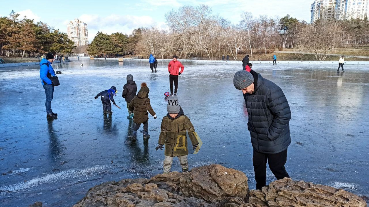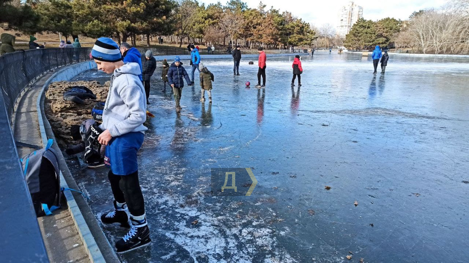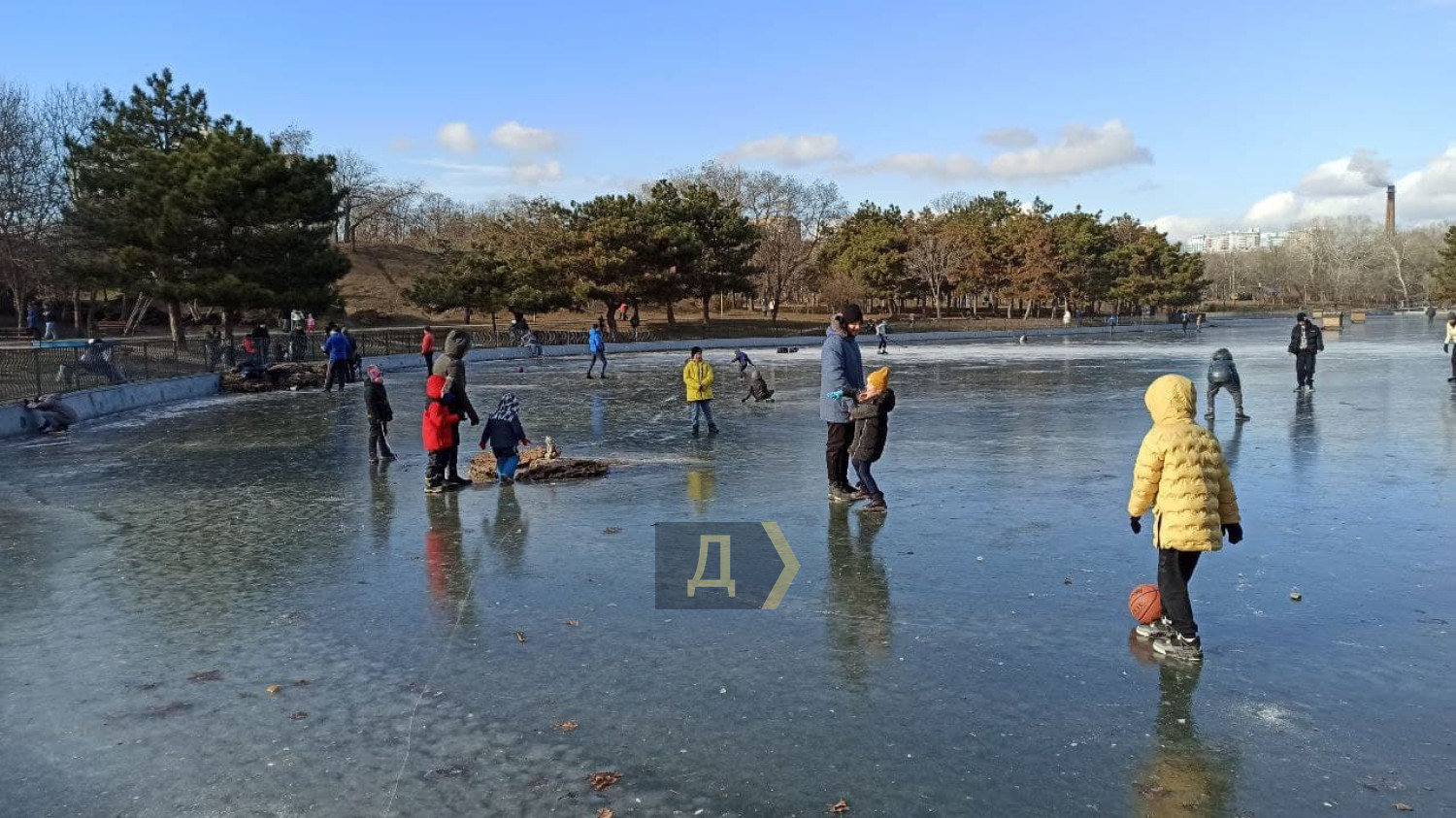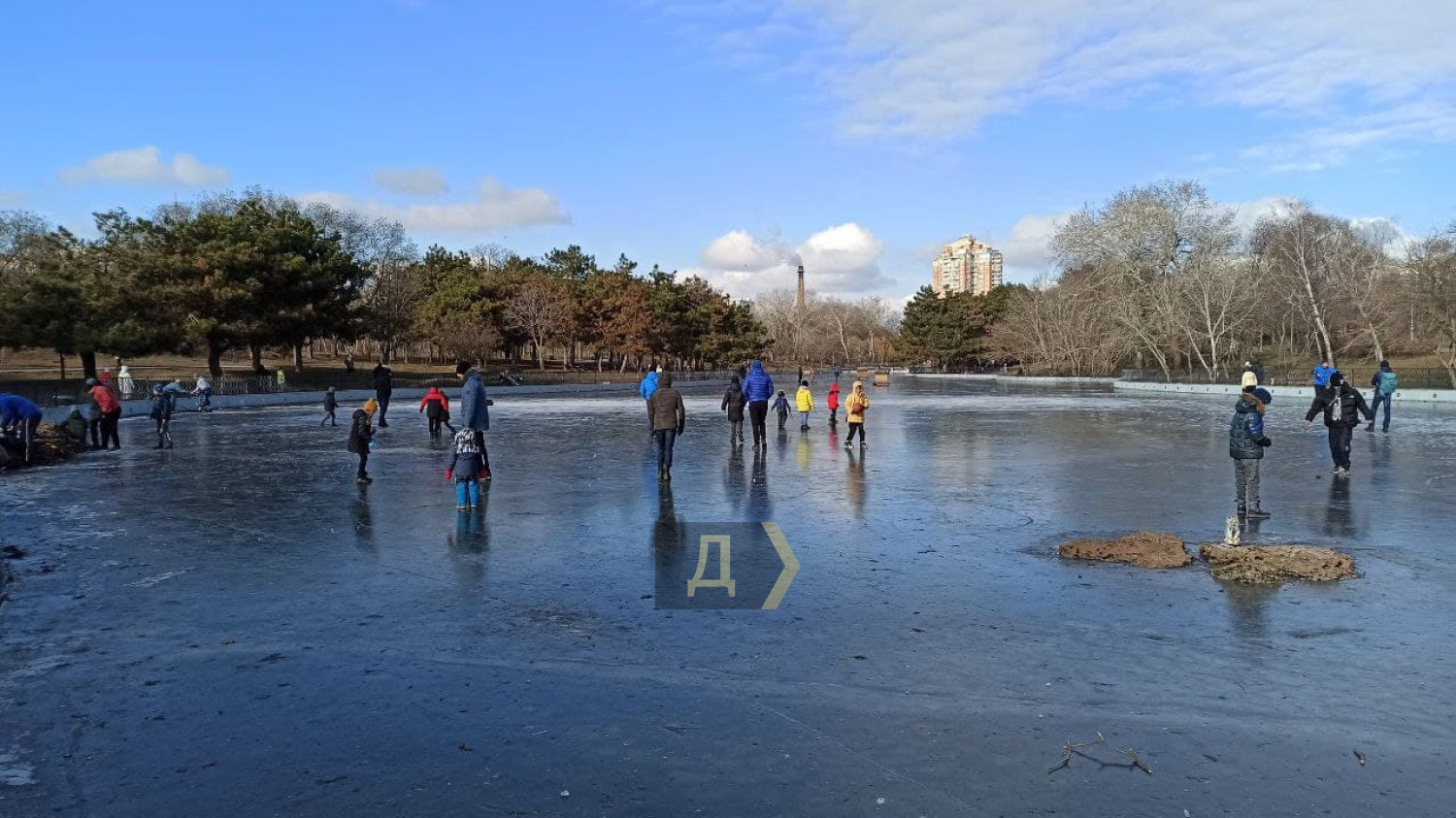 Пруды в парке Победы покрылись относительно толстым слоем льда. Одесситы не упускают такой возможности и выходят покататься на бесплатном катке, несмотря на то, что столбик термометра показывает ноль, передает корреспондент «Думской». Кто-то приходит на пруды со своим снаряжением – коньками и клюшками, некоторые не ленятся приносить санки. Катаются в основном на средних водоемах, в частности у острова. Толщина льда там достигает 15-20 см. А вот на нижнем пруду, который примыкает к площади 10-го Апреля лед прочный только у кота Витражика. Посередине, где находятся утиные домики, виднеются полыньи. Напомним, прошлой зимой под лед на прудах парка провалилось несколько отдыхающих. СМЕРТЬ РОСІЙСЬКИМ ОКУПАНТАМ! Помітили помилку? Виділяйте слова з помилкою та натискайте control-enter Новини по цій темі: 13 червня 2025: Суд відібрав Дюковський сад Одеси у фірми-«пустушки» і повернув місту: за боргами ніхто платити не буде 30 травня 2025: Корабель Землі: на одеській Трасі здоров'я з'явилася величезна дзеркальна куля від Михайла Реви (фото) |