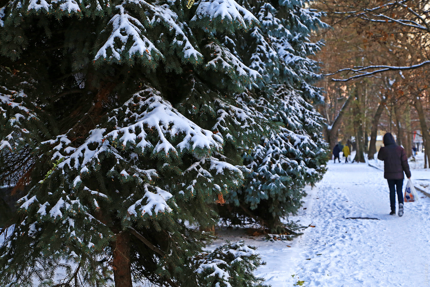 Зима для одесситов всегда наступает внезапно: мы почти не верим прогнозам, а по утрам узнаем погоду, взглянув на термометр за окном. В этом году холода пришли намного раньше, чем обычно. В парках и скверах белое покрывало надежно укрыло цветущие розы, опавшую листву и зеленую травку. Скучные скульптуры в санаториях под снегом поменяли свой образ. Например, Аленушка из русской сказки превратилась в Снежную королеву Андерсена. Я стою в одном из двориков на Французском бульваре, рядом со старенькой полуторкой, собранной восемь десятков лет назад. Здесь так просто нафантазировать, что случился провал во времени Даже дребезжание трамвая, проезжающего за коваными воротами, наверное, не отличается от такового в середине прошлого века. В реальность возвращают только кондиционеры на стенах, стеклопакеты в окнах и современные авто, припаркованные в самых неожиданных местах. Зима на время вступила в свои права. Впрочем, уже с понедельника обещают потепление, и сказке придет конец. Фото Сергея Смоленцева СМЕРТЬ РОСІЙСЬКИМ ОКУПАНТАМ! Помітили помилку? Виділяйте слова з помилкою та натискайте control-enter |