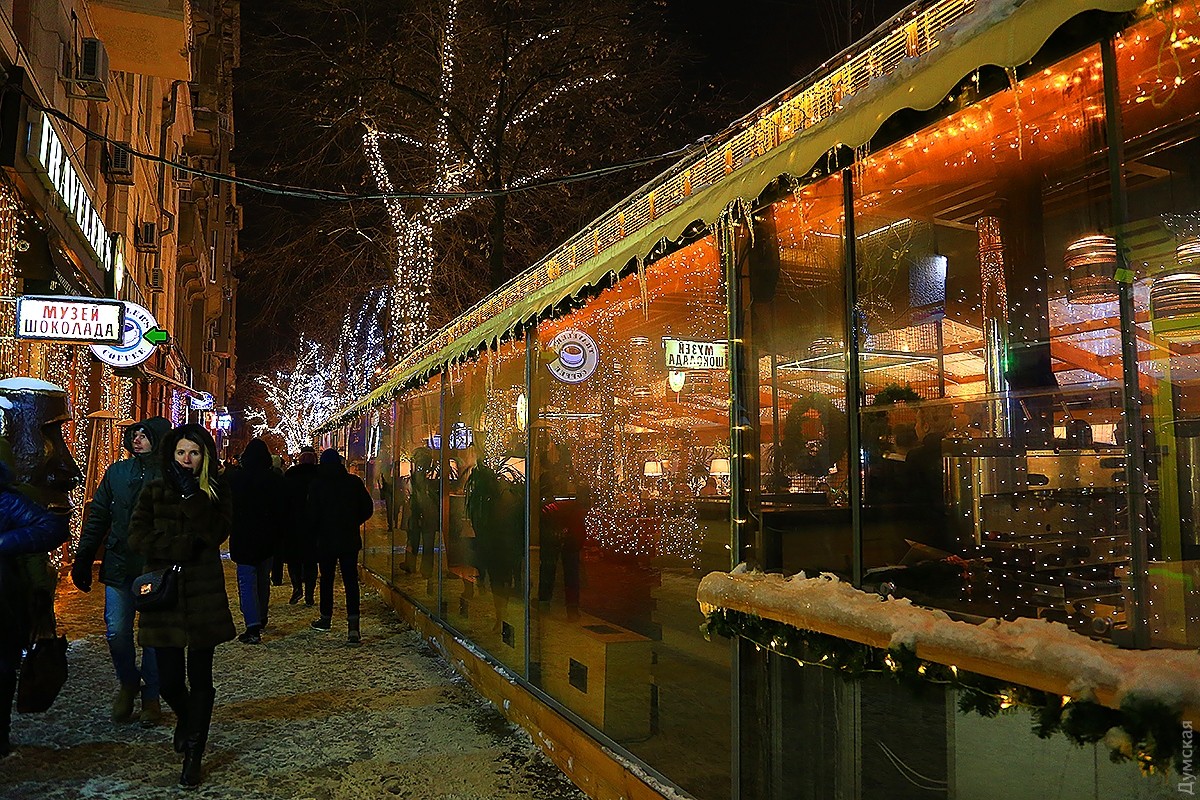 Крепкий мороз немного отступил, и главная улица города- Дерибасовская- снова полна гуляющих. Снег здесь почти полностью убрали с брусчатки, оставив сугробы вдоль тротуаров. Деды Морозы, Санты, Снегурки завлекают одесситов сфотографироваться у елки и вкусить атмосферу праздника. Впрочем, новогодней и рождественской атмосферы тут и без них хватает: гигантские шары и гирлянды, ароматный глинтвейн с ярмарки и красочные витрины добавляют сказочного настроения. Фото Сергея Смоленцева СМЕРТЬ РОСІЙСЬКИМ ОКУПАНТАМ! Помітили помилку? Виділяйте слова з помилкою та натискайте control-enter |