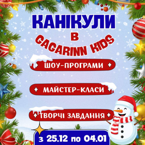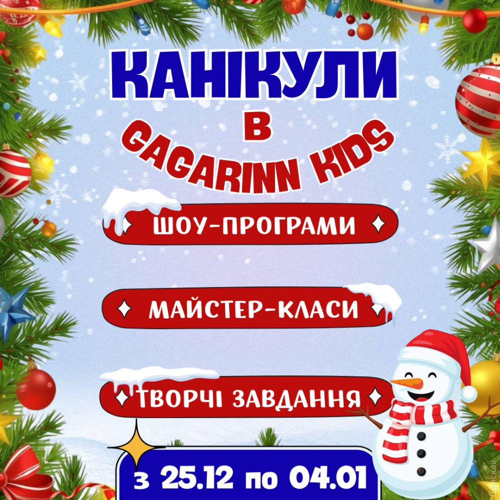 Зимові канікули в Gagarinn Kids — 11 днів казки, творчості та веселощів (на правах реклами)Подаруйте дитині незабутню святкову магію: з 25 грудня по 4 січня у дитячому центрі Gagarinn Kids на маленьких гостей чекає грандіозна новорічна програма. Кожен день зимових канікул — це нова захоплива історія, професійна анімація та цікаві майстер-класи, які допоможуть розкрити творчі таланти вашої малечі. Розклад зимових пригод: 25.12 — Різдвяне шоу мильних бульбашок з Ельфами 26.12 — Кулінарний майстер-клас 27.12 — Написання листів Санті разом з Ельфами 28.12 — Творчий оригамі майстер-клас 29.12 — Анімаційна програма з Анною та Ельзою 30.12 — Дитячий зимовий квіз 31.12 — Квест-програма з Сантою 01.01 — Створення Карти бажань 02.01 — Кулінарний майстер-клас 03.01 — Творчий МК: розмальовка фігур 04.01 — Паперове шоу для всіх охочих Пориньте у святкову магію разом із Gagarinn Kids! Це будуть найяскравіші канікули зими Чекаємо на вас за адресою, м. Одеса, вул. Аркадійське плато, 5Б ТРК Gagarinn Plaza, 4-й поверх Телефон 093 170 70 10 СМЕРТЬ РОСІЙСЬКИМ ОКУПАНТАМ! Помітили помилку? Виділяйте слова з помилкою та натискайте control-enter |