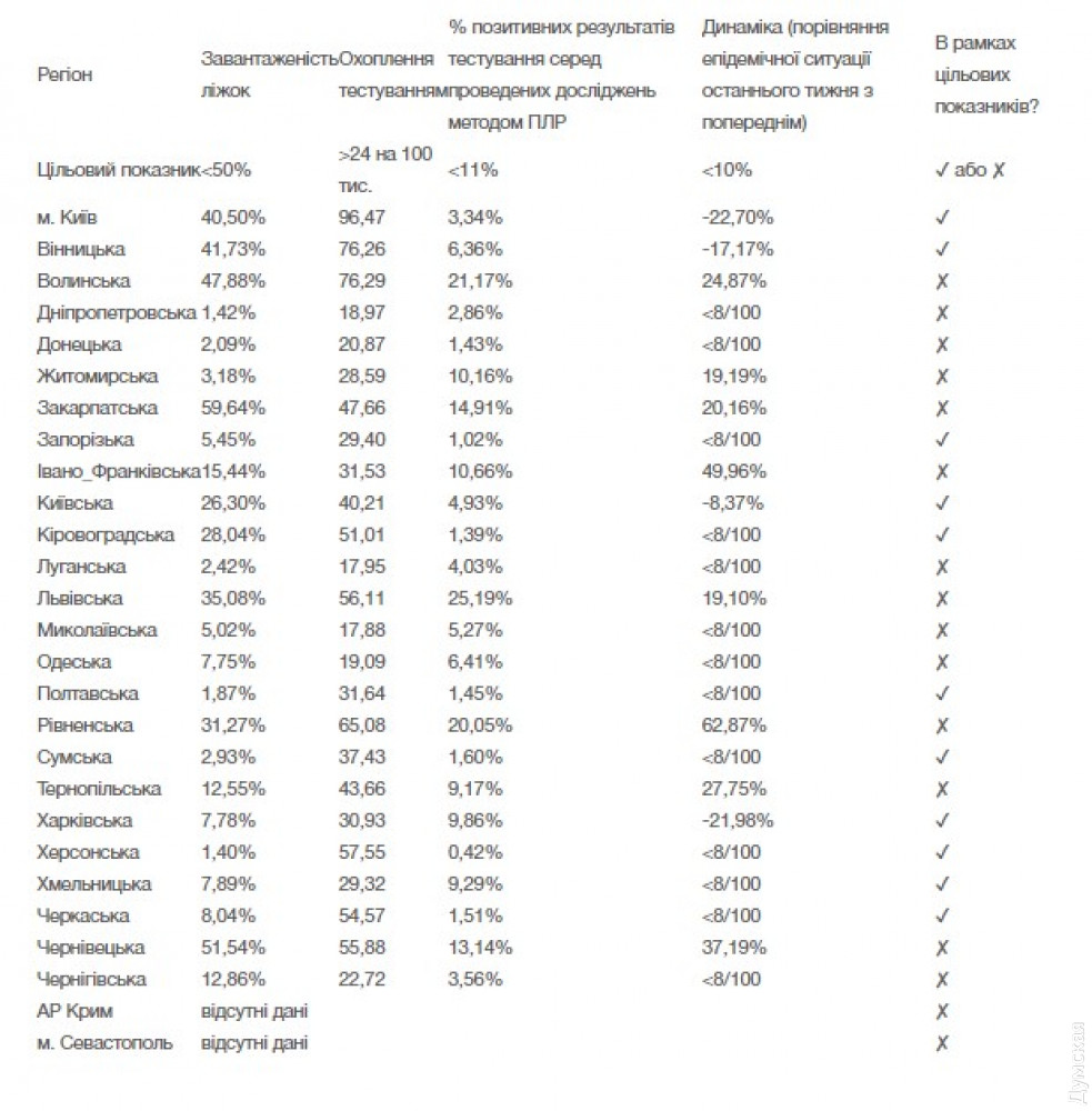Половина регионов Украины не полностью готова к ослаблению карантина — в их числе и Одесская областьПо новым критериям, которые Кабинет министров ввел для оценки возможности ослабить ограничительные меры, к смягчению карантина не готовы 14 областей Украины. Об этом сообщает пресс-служба Министерства здравоохранения. При этом самый высокий рост количества заболевших коронавирусом за неделю зафиксирован в Ровенской, Ивано-Франковской и Черновицкой областях. В двух областях, Закарпатской и Черновицкой, количество мест в больницах, принимающих пациентов с коронавирусом, превысило установленный Минздравом порог в 50%. В шести областях: Днепропетровской, Донецкой, Луганской, Николаевской, Одесской и Черниговской — делают менее 24 ПЦР и ИФА-тестов на 100 000 человек. Еще один критерий — процент позитивных ПЦР-тестов на коронавирус должен быть меньше 11% от общего числа исследований, ему не соответствуют пять областей: Волынская, Закарпатская, Львовская, Ровенская и Черновицкая. Также оценивается динамика эпидемиологической ситуации, рост числа заболевших за последнюю неделю по сравнению с предыдущей должен быть меньше 10%. По этому критерию хуже всего ситуация в Ровенской области — там зафиксирован рост на 62,87%, в Ивано-Франковской — 49,96%, и Черновицкой — 37,19%. Превышен данный показатель также в Волынской, Житомирской, Закарпатской, Львовской и Тернопольской областях. Таким образом, к ослаблению карантина не готовы полностью Волынская, Днепропетровская, Донецкая, Житомирская, Закарпатская, Ивано-Франковская, Луганская, Львовская, Николаевская, Одесская, Ровенская, Тернопольская, Черновицкая и Черниговская области. СМЕРТЬ РОСІЙСЬКИМ ОКУПАНТАМ! Помітили помилку? Виділяйте слова з помилкою та натискайте control-enter Новини по цій темі: 4 березня 2023: "Вакцини-довгожителі", або Як щеплення проти COVID-19 перетворилися в Україні на небезпечний ритуал 27 січня 2023: МОЗ зобов`язали опублікувати договори на закупівлю вакцин проти COVID-19: апеляційний суд задовольнив позов журналіста "Думської" 11 січня 2023: За тиждень в Одесі зафіксовано 159 випадків ковіду 4 січня 2023: За тиждень в Одесі зареєстровано 113 випадків ковіду |