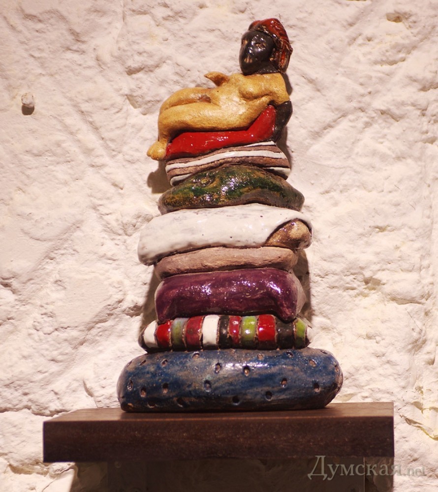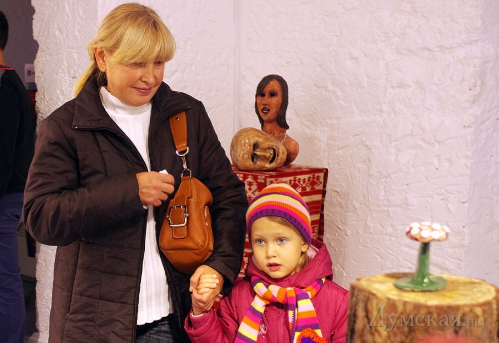 Выставка керамиста Натальи Мариненко получила название «Наташины сказки». Имея большой опыт в области своего более чем оригинального творчества, участия в проектах contemporary-art и сотрудничества со столичным театральным центром «Дах» (между прочим, в Одесском украинском театре идет спектакль Влада Троицкого «Украинский Декамерон» в Наташином оформлении), одесская художница обзавелась хорошей мастерской, куда стала приглашать детей для занятий керамикой в студии «Детский Лепит».