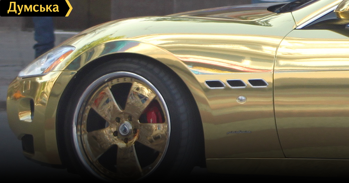 По Одессе колесит единственная в мире «золотая» Maserati GranTurizmo. В Пальмиру шикарную иномарку привезли на эвакуаторе из Киева вчера утром. Такого авто нет больше ни у кого! Даже у арабских шейхов, которые ввели моду на «солнечные» авто, до итальянских «жеребцов» Maserati руки не дошли. Про Украину и говорить нечего. «У нас мода на золото и серебро появилась в конце 2010-го, — рассказывает менеджер проектов киевской студии southart, где тюнинговали одесскую Maserati, Александр Хоменко. — Обтянуть машину «серебром» стоит дешевле, и таких авто — много, а «золотых» — единицы». Взглянув на сверкающее авто, и вправду можно подумать, что его покрыли натуральным золотом. На самом деле «скакуна» обтянули специальной золотой пленкой, в составе которой нет металла №1. «И все равно это недешевое удовольствие. Работа над среднестатистическим седаном занимает около недели и стоит $5—7 тыс., — говорит Хоменко. — Плюс цена самой пленки. Она отличается по качеству, но в среднем стоит около $100 за кв. м». По словам специалиста, изначально было несколько эскизов покраски авто (заводской цвет — черный. — Авт.), но владелец, которого в компании называть отказываются, остановился на «золоте». По нашим подсчетам, одессит потратил на уникальный тюнинг около $15 тыс. Одесские любители эксклюзивных спортивных и тюнингованных авто говорят, мол, обычной Maserati в Одессе уже никого не удивишь. «Их сейчас в городе ездит 7—8 автомобилей. Знаю точно, что один — у экс-депутата горсовета Константина Шпилевого, второй — у известного винодела Роберта Гулиева. Еще одна машина вроде бы есть у нардепа Игоря Плохого, — сказал нам автолюбитель Алексей. — Новый GranTurizmo можно купить от $195 тыс. (для сравнения, новенький Porsche Cayenne стоит около $115 тыс.)». Фамилия владельца — тайна за семью печатями. Как поведал нам один из автолюбителей-коллекционеров, «золотого жеребца» заказал себе одесский бизнесмен, но он — не украинец.