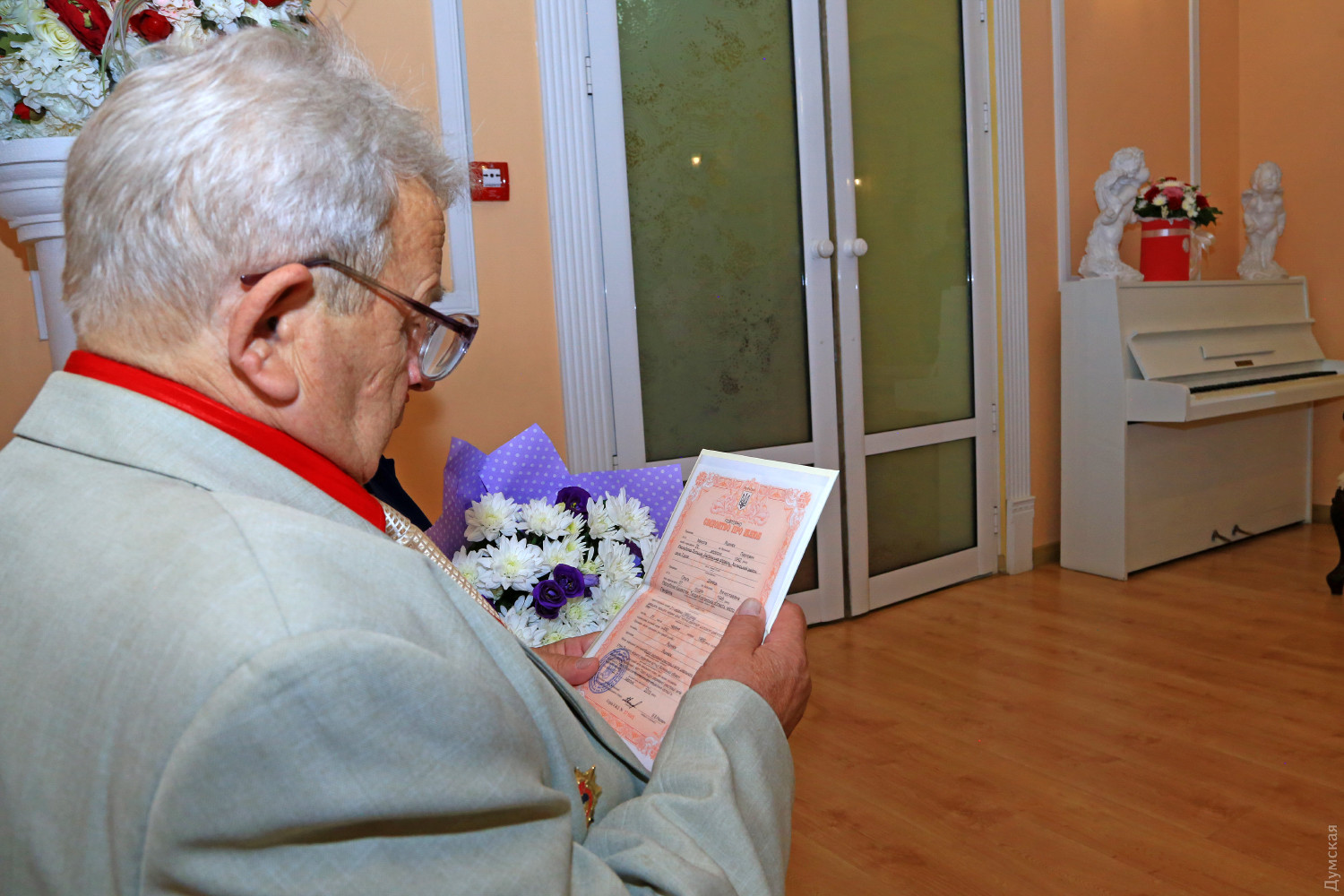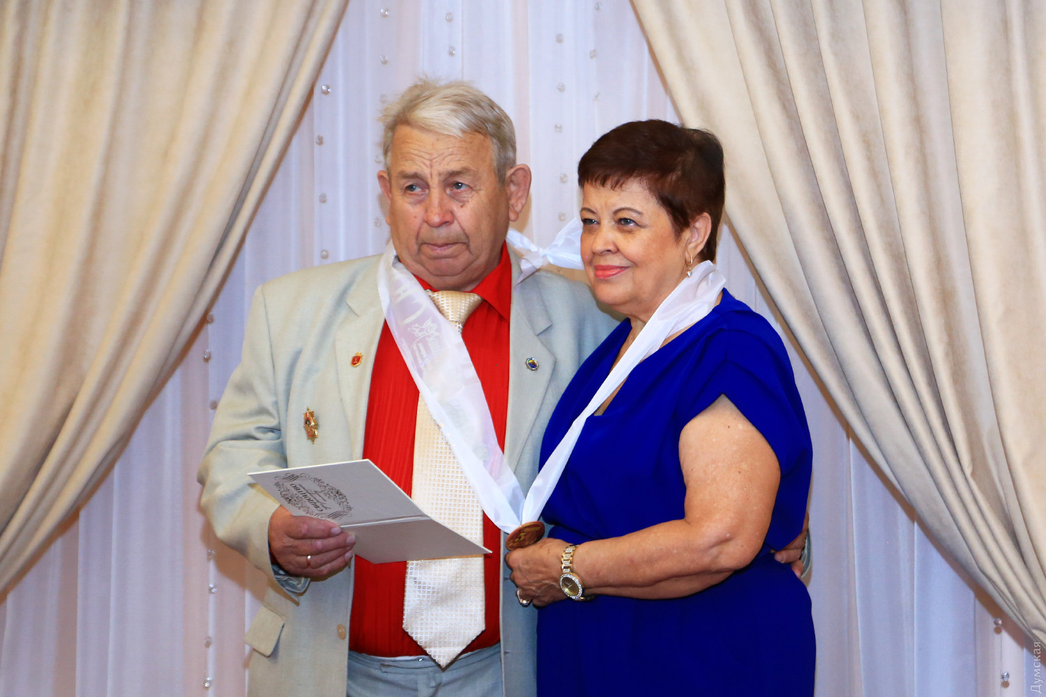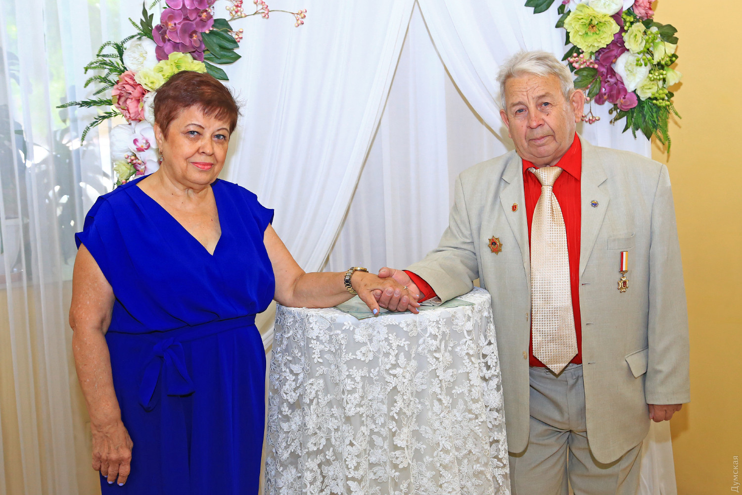 Золотая свадьба: одесская пара повторно зарегистрировала брак после 50 лет семейной жизниНеобычное бракосочетание прошло сегодня в Малиновском РАГСе, что на Успенской, 60. Николай Павлович и Ольга Вячеславовна Яцынюк в день своей золотой свадьбы решили еще раз зарегистрироваться и получить повторное свидетельство о заключении брака. Инициатором неожиданного праздника стали дочь и внучка юбиляров. В зале звучал марш Мендельсона, регистратор говорила красивые слова, а жених и невеста, как и 50 лет назад, надевали друг другу обручальные кольца, получали цветы, подарки и поздравления родных и гостей. «Мои родители — самые замечательные не только для меня, они вошли в золотые страницы граждан нашего города. Все свое время они отдают людям и служению искусству. Заслуженные педагоги, лауреаты многочисленных городских, республиканских и международных конкурсов, члены жюри всех одесских музыкальных смотров и конкурсов, мои родители посвятили жизнь музыкальному развитию одесситов», — рассказывает дочь Вероника Сахарова (Яцынюк). Интересно, что Николай Павлович и Ольга Вячеславовна нередко участвуют в одних и тех же мероприятиях в качестве членов жюри, но, несмотря на семейные узы, каждый имеет свое мнение, часто отличное от мнения супруга. Дети и внуки также пошли по стопам родителей. Вероника стала кандидатом искусствоведения, лауреатом международных конкурсов и обладателем международной премии в области классического музыкального искусства. Внучка юбиляров, несмотря на молодость, также известная пианистка. Специально ради нее в берлинском Бундестаге установили рояль, на котором она сыграла концерт для послов многих стран совместно с американской скрипачкой. По словам Вероники, от идеи до воплощения замечательной идеи праздника прошел всего один день. «Раньше мне было обидно, что я не была на свадьбе своих родителей, поэтому эта идея и родилась у меня. Наши одесские специалисты могут абсолютно все, работники Малиновского ЗАГСа откликнулись практически мгновенно, и я рекомендую всем юбилярам устраивать такую небольшую встряску с приятными воспоминаниями», — рассказала дочь юбиляров. «Многие спрашивают, каков секрет долгого союза? Во-первых, надо любить. Настоящая любовь не проходит со временем. К тому же, мы всегда заботились и помогали друг другу, старались всегда быть вместе, в общем, как в сказке — делили и радости печали», — рассказал Николай Павлович. Церемония закончилась небольшим концертом. Дочь Вероника исполнила для юбиляров попурри из нескольких музыкальных произведений на тему «Истории любви». После этого молодые вместе с гостями отправились в свадебное путешествие на парусной яхте в открытое море. Отметим, что услуга повторного бракосочетания «Юбилейная свадьба» внедряется на всей территории Украины с 2018 года. Любая семейная пара может заказать такой ритуал. В 2018 году в области было проведено 8 «юбилейных свадеб», а в 2019 году — уже 7. Фото Сергея Смоленцева СМЕРТЬ РОСІЙСЬКИМ ОКУПАНТАМ! Помітили помилку? Виділяйте слова з помилкою та натискайте control-enter |