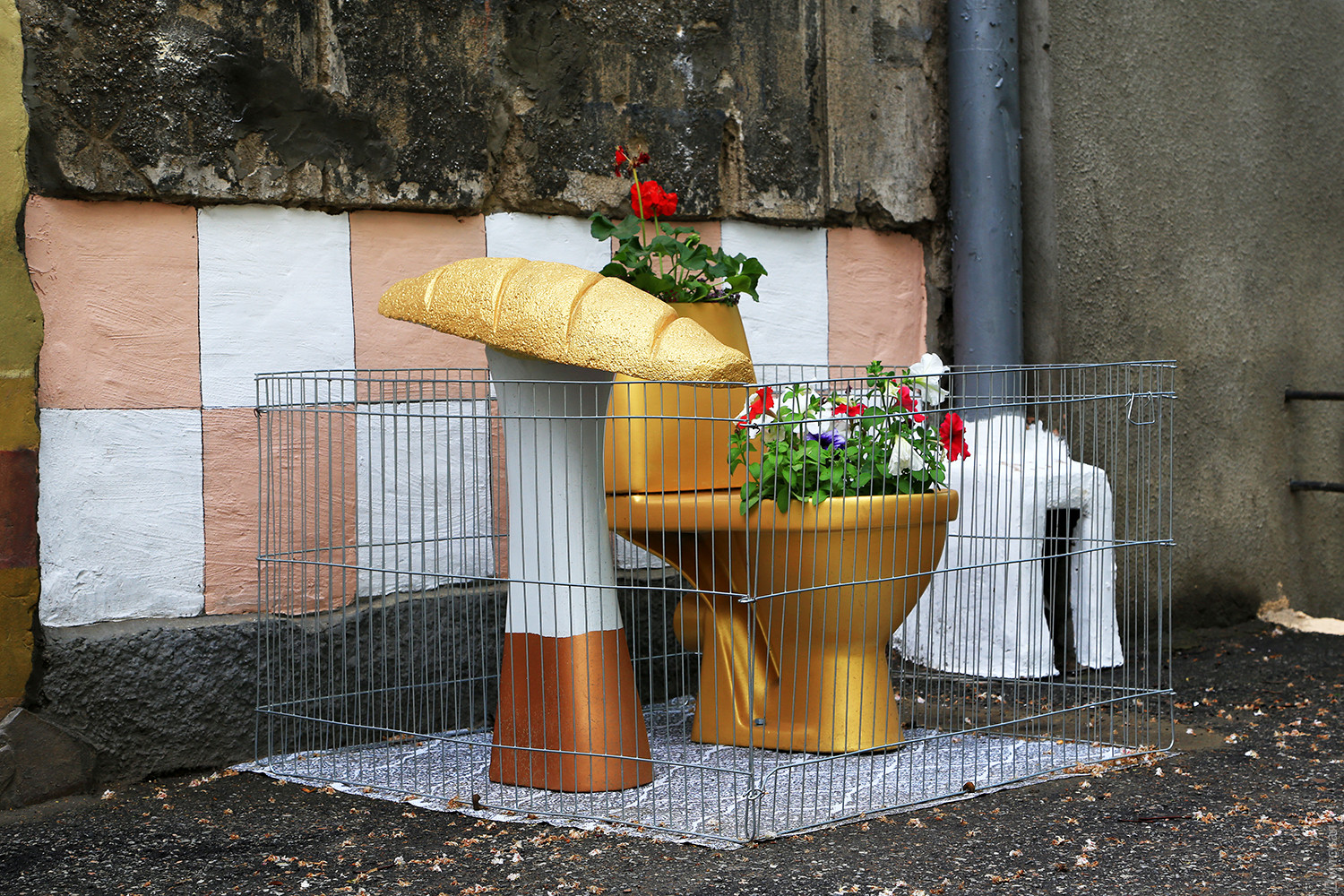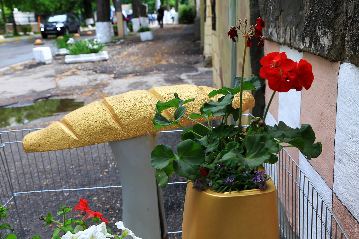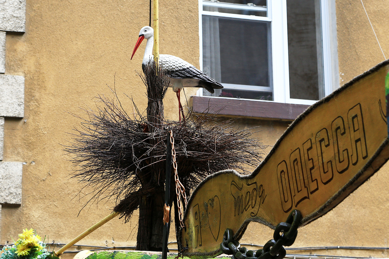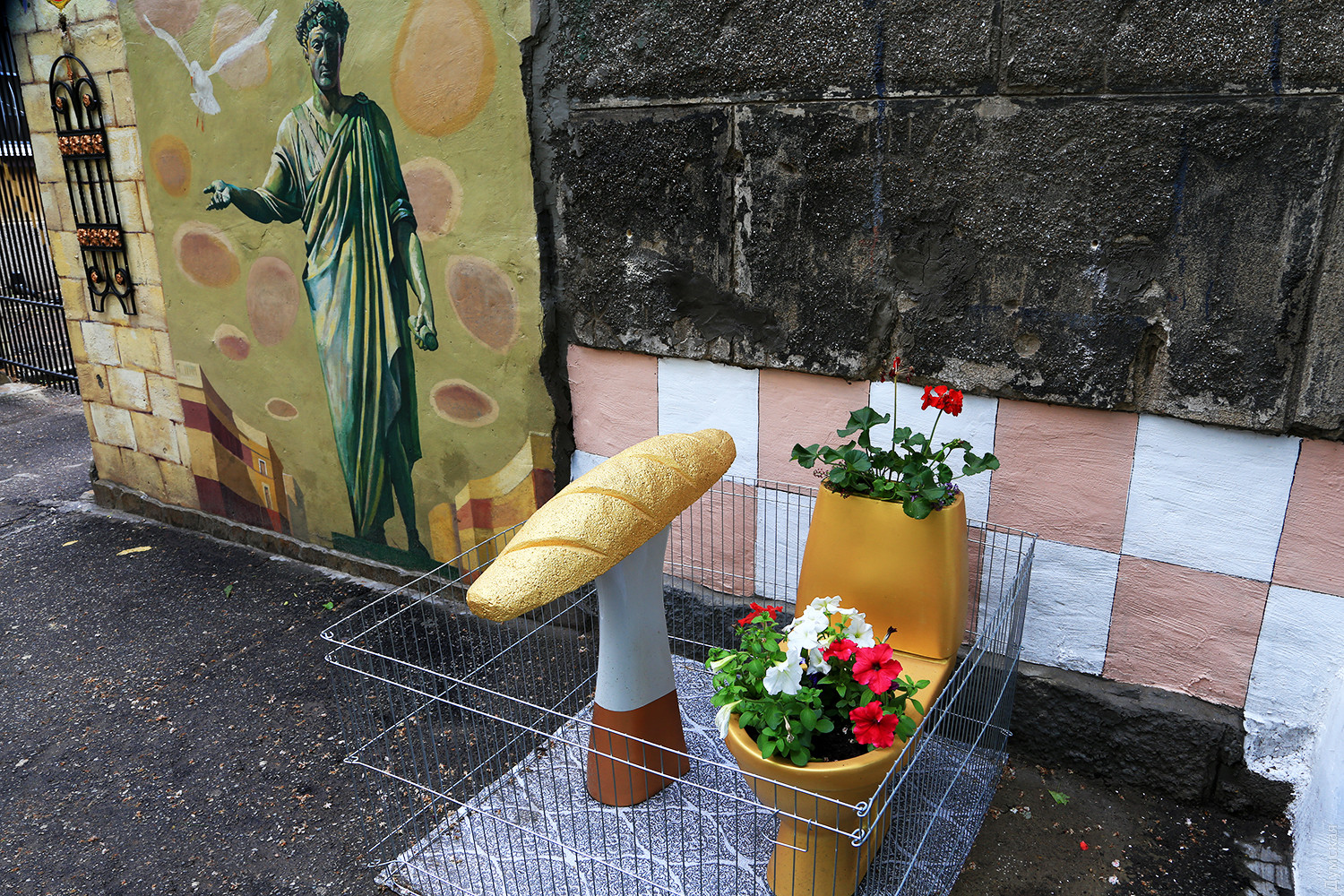 В самом центре Одессы, в Мукачевском переулке, что напротив театра Музыкальной комедии, появился памятник золотому батону и унитазу из того же материала. Корреспондент «Думской» побывал в одесском Межигорье. Инсталляция, включающая в себя основные символы режима Виктора Януковича и цветник, выросла рядом с домом №1/3. Батон возвышается на постаменте, а золотое чудо сантехники внутри украшено цветами и огорожено от вандалов небольшой металлической оградкой. Композиция окрашена ярким золотистым металликом и очень похожа на настоящие атрибуты «легитимного». Вокруг чистота и порядок, предусмотрена даже ночная подсветка и видеонаблюдение на случай непредвиденных ночных гостей. Автор «памятника», улыбаясь, рассказывает о том, как ему пришла в голову такая идея. «Все началось с благоустройства двора и забора, выходящего в переулок, — говорит Игорь Красняк. — Я своими руками делал ограду, красил и украшал забор и стены. Единственное, что пришлось купить — это аиста, которого достаточно трудно слепить из подручных материалов, все остальное сделал сам». Игорю Васильевичу уже семьдесят лет, он профессиональный кок, всю жизнь проработавший на судах ЧМП. Сейчас ветеран на пенсии, и у него много свободного времени, но он не дает себе скучать и занимается творчеством. Попутно подрабатывает дворником в ОСМД нового высотного дома. По словам мастера, унитаз он поставил еще в прошлом году, а юморные соседи попросили добавить к нему золотой батон. Так совместными усилиями и получилась эта инсталляция. «Мне нравится, когда вокруг чистота и есть на что посмотреть, — признается бывший моряк. — Люблю делать для людей приятные вещи, люблю, когда соседи говорят мне спасибо». На лестничной клетке своего дома Игорь Васильевич сделал ремонт и украсил стены рисунками. Везде цветы, игрушки и даже зеркала. Аккуратно подрезанные деревья и цветы, высаженные рядом с домом на клумбах, — все это тоже его рук дело. Соседи по переулку уважают «золотых дел» мастера и с гордостью рассказывают о нем. Автор — Сергей Смоленцев СМЕРТЬ РОСІЙСЬКИМ ОКУПАНТАМ! Помітили помилку? Виділяйте слова з помилкою та натискайте control-enter |