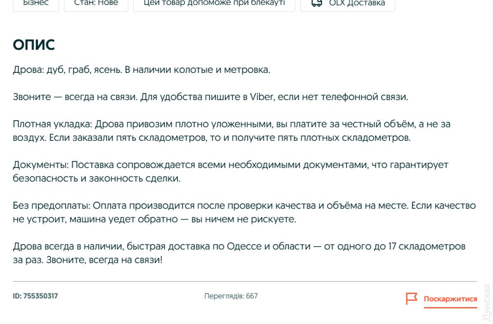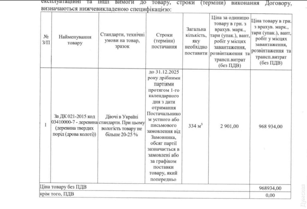 Гріються, як можуть: прокуратура Одещини придбала дрова за завищеними цінами«Думська» продовжує вивчати тендерні закупівлі одеських бюджетних відомств у приватних компаній. Цього разу нас зацікавила закупівля дров одеською обласною прокуратурою за явно завищеною ціною. Йдеться про тендер, в результаті якого одеські прокурори закупили 334 кубометри (складометри) дров для своїх структурних підрозділів у районах області. Судячи з документів, дрова призначені для опалення районних прокуратур, які знаходяться в Сараті, Окнах, Татарбунарах, Арцизі, Килії та Кодимі. Або до будівель не підведено центральне опалення, або дрова закупили виходячи з поганих прогнозів на майбутню зиму – топові чиновники все частіше попереджають про ймовірні блекаути в результаті бомбардувань України. І все б нічого, про майбутні блекаути давно попереджені всі. Однак ціна закуплених дров цікава. Згідно з договором 88 від 9 вересня 2025 року, прокурори купили у ФОП Фольварков 334 кубометри дров твердих порід за куб по 2901 грн з доставкою в райони. Всього – на суму 968 934 грн. Справедливості заради зазначимо, що покупець – Одеська облпрокуратура при оголошенні тендерної пропозиції дотрималася всіх формальностей, поставивши чіткі умови як щодо якості дров (тільки твердих порід), так і щодо доставки. Після оголошення тендерного конкурсу пропозиції на поставку висунули чотири підприємці – ФОП. Переможцем став ФОП Фольварков В.А. з Херсона. Однак аналіз пропозицій постачання оптом дров в Одеській області свідчить про явне завищення вартості цього палива. Наприклад, на сайті «Думська» знайшла пропозиції постачання оптом дров твердих порід – дуба, граба, за ціною 2500 за куб з доставкою по області. Втім, є пропозиції та за нижчими цінами, наприклад по 2200 грн з доставкою по області в будь-якій кількості. Є пропозиції постачання дров твердих порід і зовсім за 2000 грн за куб, з доставкою по області. При цьому всі перевірені «Думською» продавці також обіцяють, що їх товар «білий», пропонуючи офіційні документи на деревину.