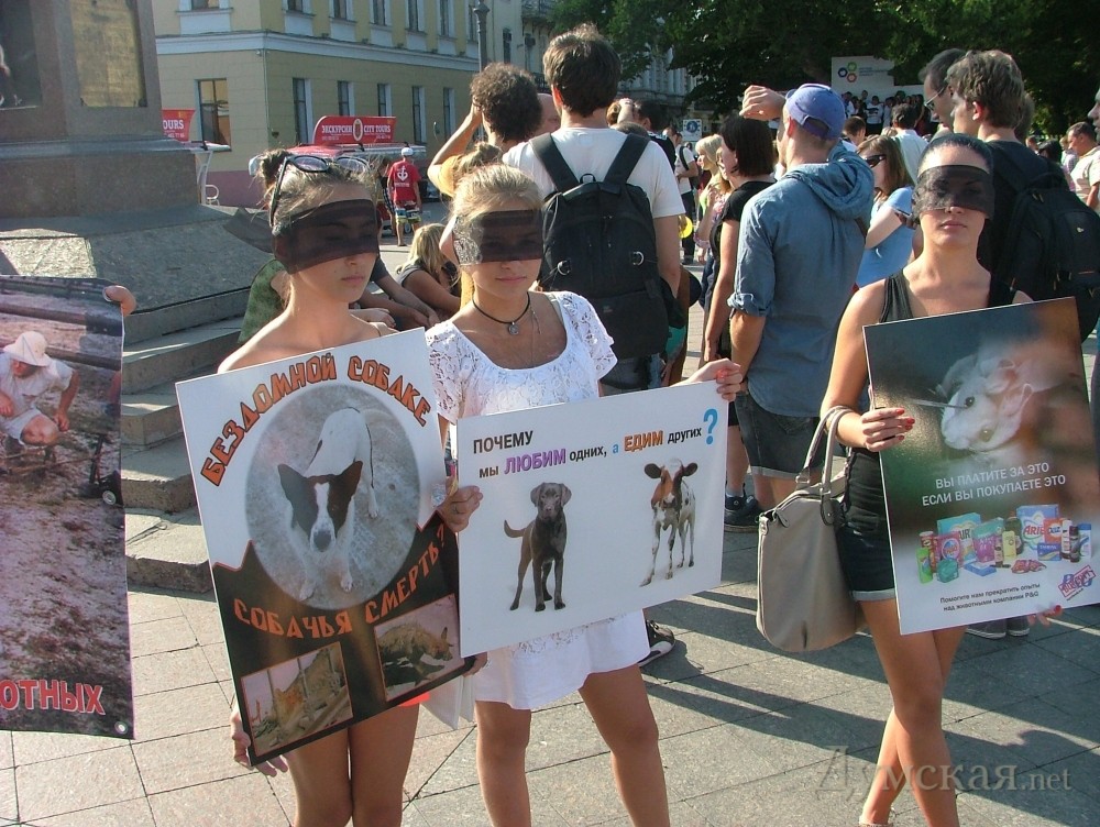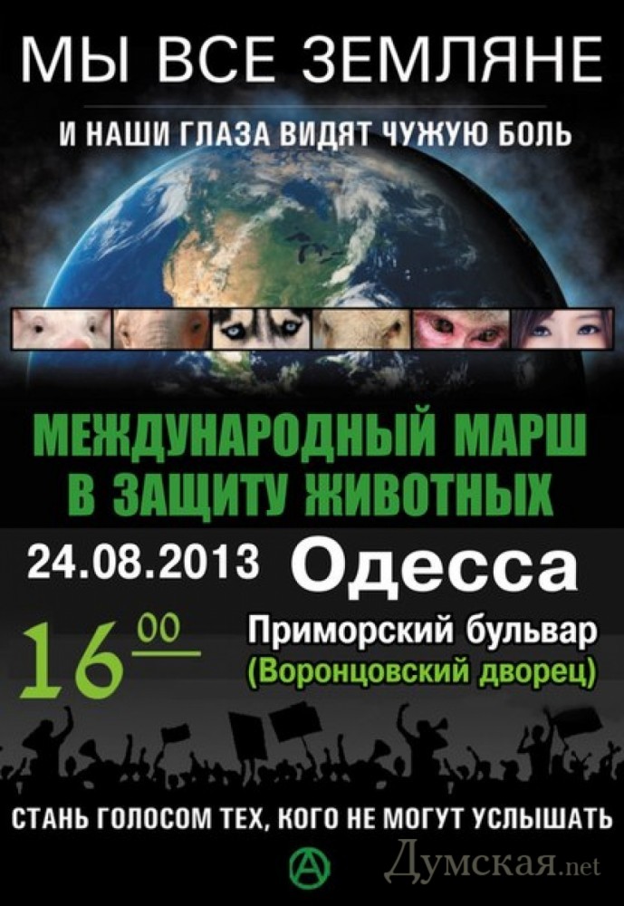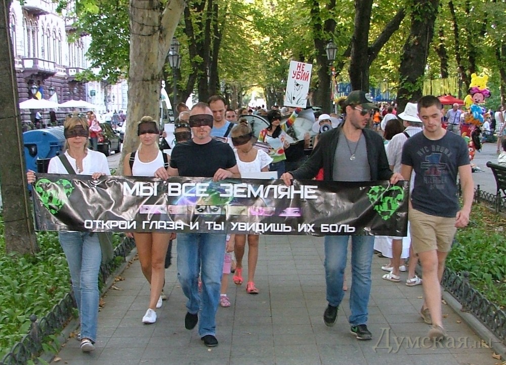Зоозащитники прошли маршем по Приморскому бульвару: они требовали остановить догхантеров и прочих садистовОдесские зоозащитники прошли маршем по Приморскому бульвару к мэрии, потребовав от городской власти и силовых структур сделать все, чтобы прекратить насилие в отношении братьев наших меньших. Акция состоялась 24 августа. В марше приняли участие около 60 активистов различных организаций. Они повязали на глаза черные повязки, символизирующие безразличие общества к проблемам животных. «В Украине, как и в других странах, жестокое обращение с животными признается преступлением и квалифицируется ст. 299 УК Украины. Но только наше общество по-прежнему проводит опыты и эксперименты на животных, использует их для развлечений, например в цирках. Животных мучают и убивают ради мяса и меха, над дикими животными издеваются уличные фотографы, тысячи бездомных собак и кошек погибают на наших улицах от рук людей. И Одесса, к сожалению, здесь не стала исключением. С каждым годом ситуация в сфере защиты животных ухудшается. А виной тому является тотальное бездействие местной власти и правоохранительных органов, полная безнаказанность всякого рода садистов», — отмечают организаторы акции. По словам зоозащитников, с 2011 года на улицах Одессы от рук отравителей и тех, кто называет себя «догхантерами», погибли тысячи бездомных собак и котов. А в последнее время «догхантеры» стали охотиться и на людей – опекунов бездомных животных: «На страницах интернет-ресурсов, на которых данная категория объединяется и делится своими «успехами», а также планами, наряду с фотографиями их жертв – убитых собак и котов — стали все чаще появляться фотографии опекунов бездомных животных с недвусмысленными подписями. Но для одесской милиции это, видно, не повод волноваться. Так когда же власти и правоохранительные органы начнут реагировать?» По словам участников, если власть не пресечет безудержную эксплуатацию животных, не предпримет все необходимые меры по предотвращению жестоких убийств, то ситуация уже в ближайшее время может выйти из-под контроля и принять масштабы гражданского противостояния со всеми вытекающими последствиями. «Если зоозащитников-общественников и их законные интересы не могут (или не хотят) защитить власти и правоохранительные органы, то движение максимально радикализируется. Общественникам придется защищаться самим всеми известными способами. Ведь, как известно, жестокость порождает лишь жестокость!» — заявляют активисты. СМЕРТЬ РОСІЙСЬКИМ ОКУПАНТАМ! Помітили помилку? Виділяйте слова з помилкою та натискайте control-enter |