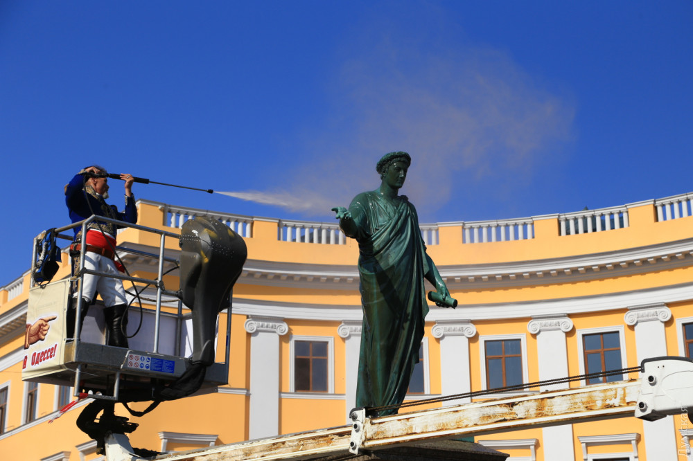 1 вересня 2019: Пушкин, градоначальник, городовой и дворник мыли памятники в центре Одессы (фоторепортаж)