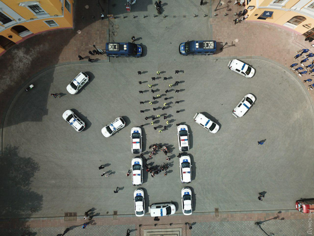 16 травня 2019: В Одессе полицейские и нацгвардейцы при помощи служебных авто изобразили огромную вышиванку (фото)