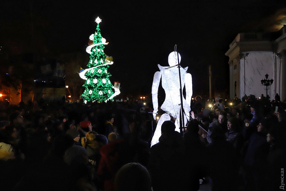 24 грудня 2018: Огромная марионетка, фейерверк и световое шоу: на Думской площади стартовал Odessa Light Fest (фото, видео)