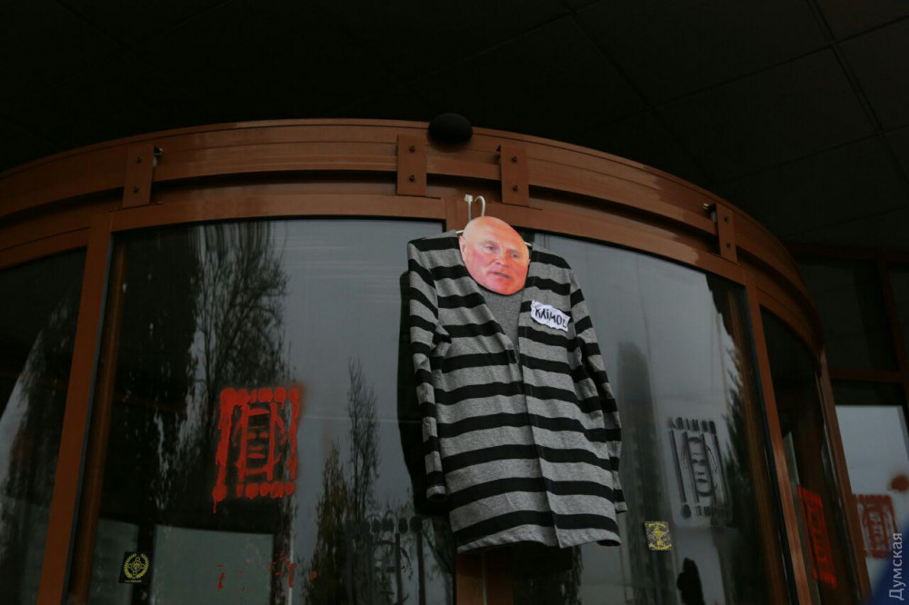 31 жовтня 2018: Националисты принесли в бизнес-центр Климова тюремную робу и потребовали, чтобы нардеп вернул наворованное