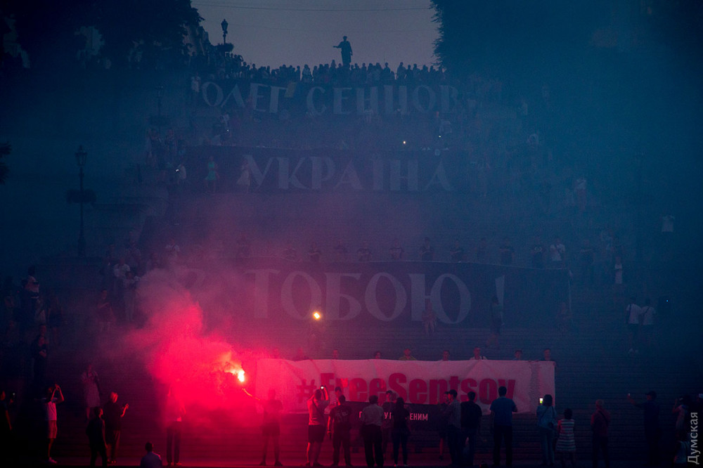 7 липня 2018: Огромные баннеры и дым файеров: на Потемкинской лестнице провели яркую акцию в поддержку Олега Сенцова (фото, видео)