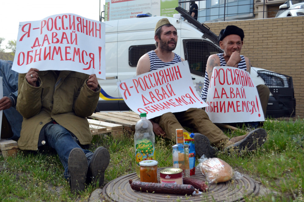 19 квітня 2018: Активисты привели под Генконсульство РФ в Одессе бездомных в ватниках