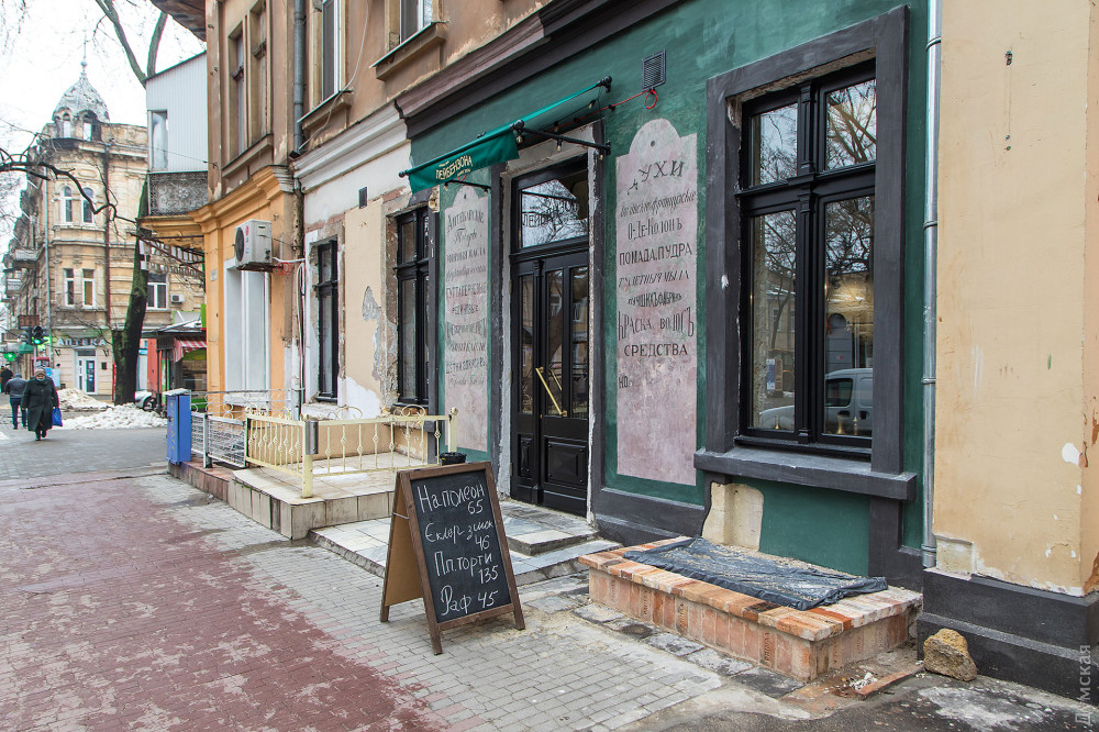 4 лютого 2021: Реставрация с продолжением: дореволюционные вывески аптеки Лейбензона на Толстого подарили историю современному кафе (фото)