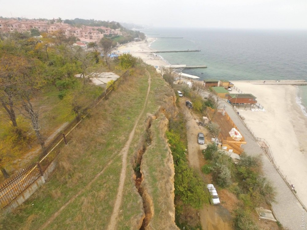 18 жовтня 2017: Побережье в районе 16-й Фонтана: трещина на склоне нешуточная (фото и видео с дрона)