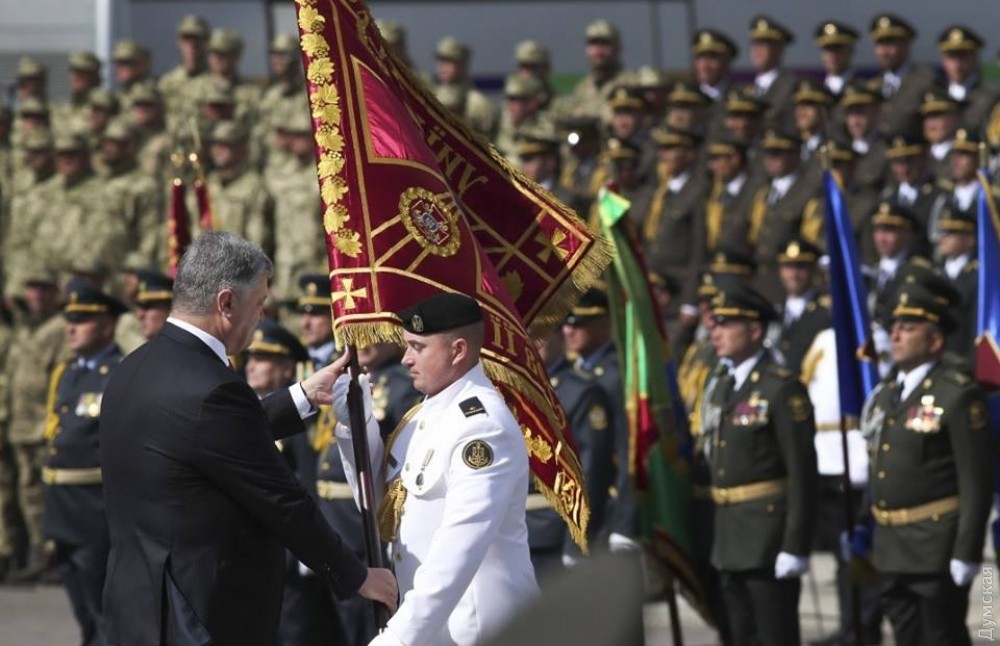 24 серпня 2017: Президент Украины вручил боевые знамена болградским десантникам и одесским морпехам