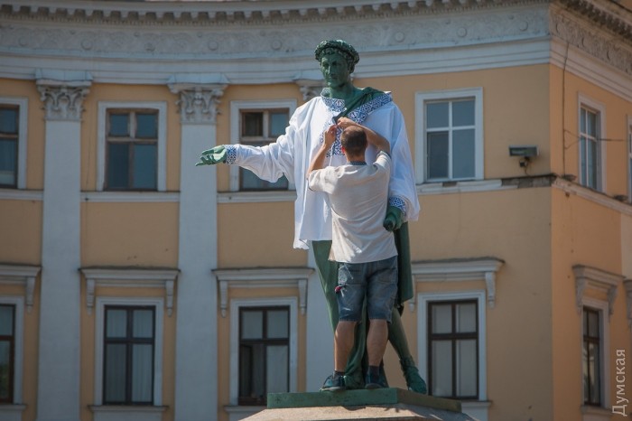 16 серпня 2017: На памятник Дюку примерили вышиванку в одесском стиле (фото)