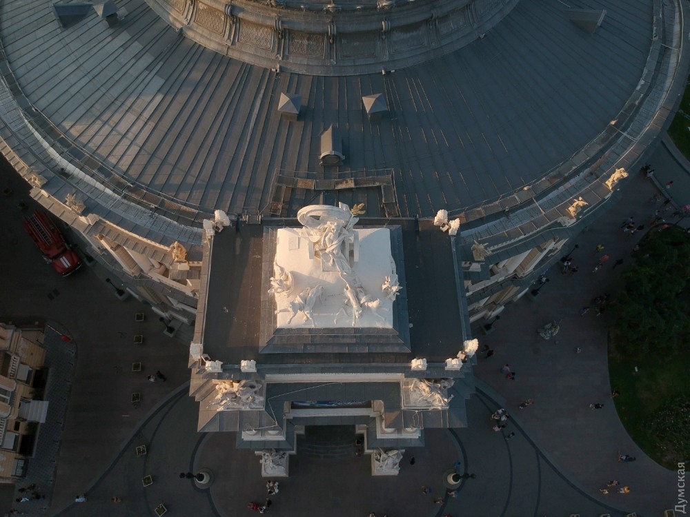 28 серпня 2017: Пантере из упряжки Мельпомены на крыше одесской Оперы вернули лапу, отломанную руферами (фото)