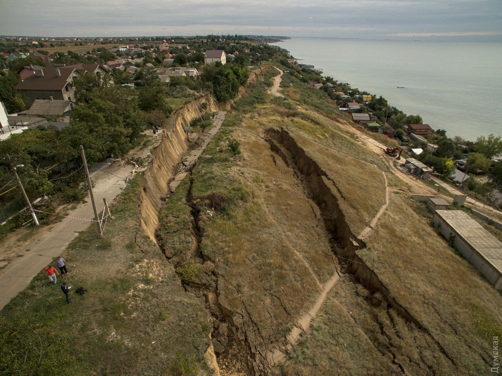 30 серпня 2017: Оползень в Фонтанке: обвал добрался прямо до калиток, в пропасть рухнули электрические столбы и дорога (фото, видео)