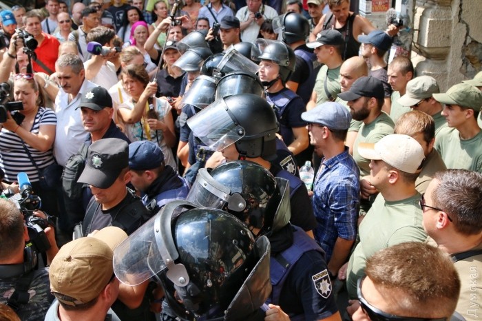 17 серпня 2017: Противостояние патриотов в центре Одессы: стороны бросаются оскорблениями и бананами (фото)