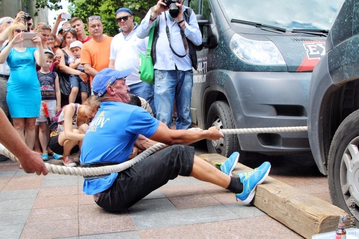 15 липня 2017: Силач из Белой Церкви протащил перед Одесской мэрией 15-тонный тягач с людьми и установил рекорд (фото)