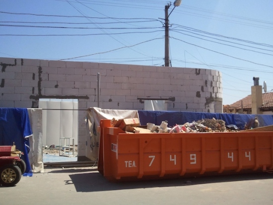 Аура строит новое здание вплотную к пешеходной дорожке.