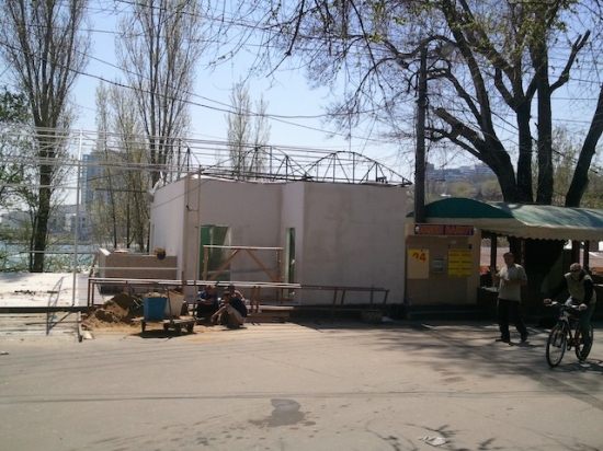 Малюсенький клочёк земли, оставшийся после застройки Спасательной станции, готов принять еще одну будку — основание готово.