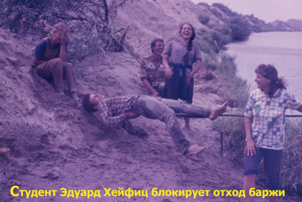 В районе перегрузки скопились баржи и восемь буксировщиков. Время не проходило зря: разговор шел по совести. Капитаны, штурманы, матросы, как оказалось, чувствуют беды Днестра сердцем. Они говорили нам, как тесно неуклюжим баржам в речке, как порой в тумане баржи, задевая берега, сносят деревья, как высасывает русло реки чудовищный земснаряд «Апшерон», как нервно приходится работать, совершая заведомое зло. Нам надо было принимать решение о продолжении или снятии пикета. Мы назвали наш пикет предупредительным, понимая, что как бы ни было виновато руководство, остановка работы целого пароходства все же неожиданна и тягостна для трудового коллектива, их семей. Студенты заблокировали отход буксира и баржи, не согласовавшей с пикетчиками логистику дальнейших действий. Очень отважно тогда вел себя студент биофака Одесского государственного университета им. И.И.Мечникова Эдуард Хейфиц (фото-Эдик лежит на тросу баржи). В общей сложности пикет продолжался больше недели. Увидев и прочувствовав, что нас реально услышали, мы решили предупредительный экологический пикет снять. Так, на закате СССР, экологи при активном участии студентов, организовав первый пикет против произвола и уничтожения экосистем реки, победили. Хочу пожелать студенческой молодежи здоровья и творческих успехов. И очень хотелось бы сегодня видеть одесских студентов на мирных протестах граждан — там, где без их задора и решительности, тяжело добиться успехов по защите прибрежных склонов на Трассе здоровья, пляже Ланжерон, по защите достоинства и конституционных прав граждан.