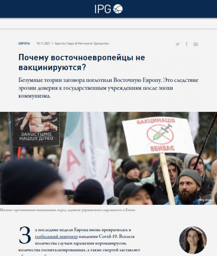 Ліберальна преса та західні аналітики звернули увагу й намагаються зрозуміти чому в країнах Східної Європи тотальна більшість мешканців уникає вакцинації від коронавірусу? Досліджуючи цю тему вони роблять висновки, що це наслідок недовіри владним інституціям людьми з країн колишнього соцтабору. Теорії заколоту домінують у свідомості суспільств, що пережили комуністичний терор, вважають вони. Проте, яких ще пояснень можна очікувати від мракобісів та противників вироблення природного імунітету? Їм очевидно складно зрозуміти, що мешканці цього посткомуністичного табору отримали ментальне щеплення від брехні та терору, які в сучасному «совку» — «євро-совку», так ретельно приховують прикриваючись світлими та благими намірами? Ми ж спостерігаючи за тим мракобіссям, яке відбувається нині у Світі, знаючи про тенденції характерні країнам Східної Європи — маємо привід укріпитися в вірі до глибинної мудрості нашого народу. Тисячолітня цивілізації збережеться — ми її фундамент!
