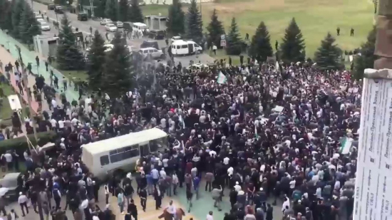 15.10.2018 акція протесту в Республіці Інгушетія (РФ) триває 12 добу. Протягом цього періоду було створено інфраструктуру: пункт харчування, майданчик, де проходить мітинг, невелике наметове містечко. Місце мітингу проходить біля будівлі республіканської ДТРК. Місце мітингу посилено охороняється: поліція, гвардія, невідомі в масках і камуфляжі. У багатьох силовиків в руках автомати.