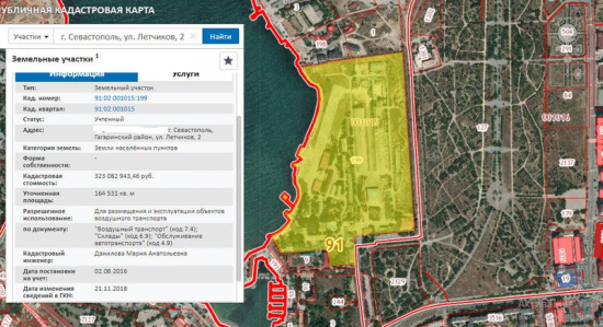 Довідково: «Севастопольське авіаційне підприємство» розташовується в Гагарінському районі Севастополя впритул до парку Перемоги, займаючи значну частину берегової лінії. Завод займає ділянку площею 164.531 квадратних метрів. Його кадастрова вартість — понад 323 млн рублів (близко 160 мільйонів гривень).