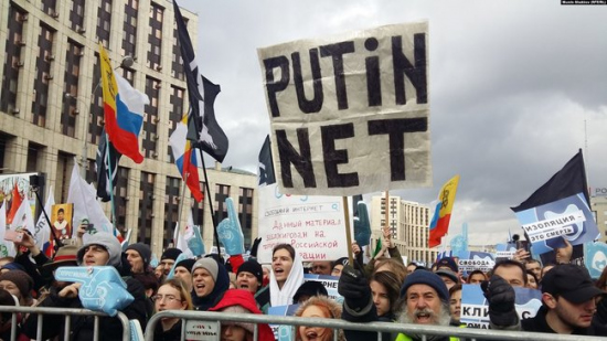 Довідково: У той же час 10.03.2019 у Москві понад 15 тис. людей взяли участь у мітингу за свободу інтернету в Росії. Перед початком акції було затримано 16 осіб, серед них є троє неповнолітніх. За даними організаторів, поліцейські вимагали ліцензії на зв'язки повітряних куль, назвавши їх безпілотним літальним засобом. Співробітники поліції вилучили також банери і задню частину сцени мітингу.