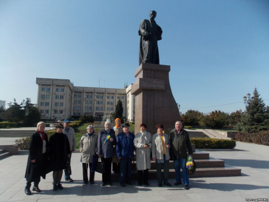 Довідково: в Сімферополі біля пам'ятника Тарасу Шевченку теж відбулися заходи, присвячені 205-й річниці від дня народження видатного українського поета і художника. Спочатку біля пам'ятника Кобзарю свій мітинг провели проросійські активісти під керівництвом депутата Сімферопольської міськради, відставного офіцера-політпрацівника Сергія Іллічова. Учасники прийшли з російськими прапорами і банером «Російська громада Криму». На мітингу голова підконтрольної Кремлю «Української громади Криму» Анастасія Гридчина заявила, що «бандерівці використовують ім'я Шевченка в корисливих цілях» і що він «не був русофобом». Вона вважає, що Шевченко — це «об'єднавчий образ трьох слов'янських народів». Деякі виступаючі навіть називали Шевченка навіть «російським письменником». За порядком під час заходу стежили наряд російської поліції і два бійці «самооборони» Криму. Після проросійського мітингу біля пам'ятника Шевченку зібралися українці Сімферополя, які поклали букети в кольорах державного українського прапора, декламували улюблені вірші Кобзаря, а також експромтом виконали широко відому пісню на його слова «Реве та стогне Дніпр широкий».