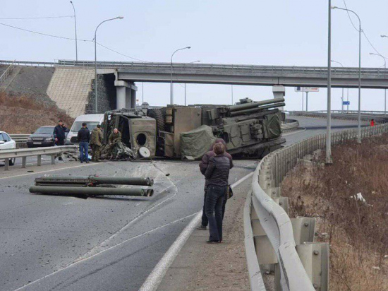 Російські військові на дорозі Седанка − Патрокл біля Владивостока 10.03.2019 перевернули ЗРГК «Панцирь-С»: