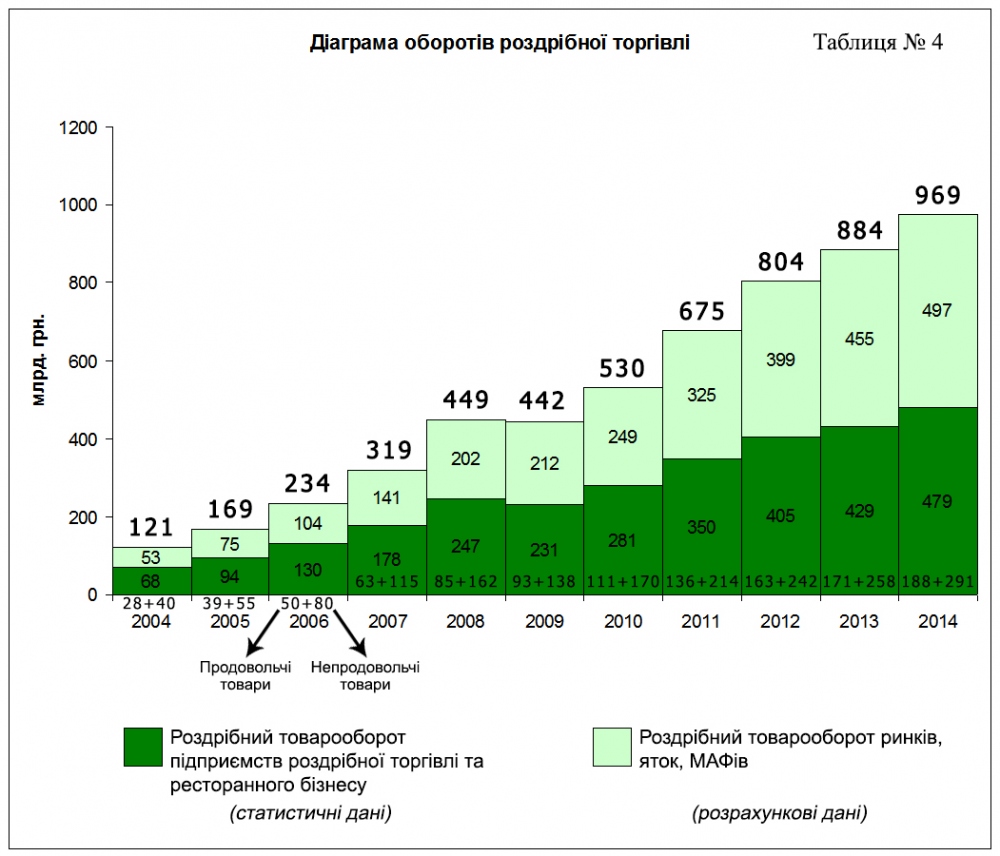 Дані розрахунки зроблені на базі показників обсягу роздрібного товарообороту підприємств, які здійснювали діяльність із роздрібної торгівлі та ресторанного господарства із застосуванням реєстраторів розрахункових операцій у 2013 році.