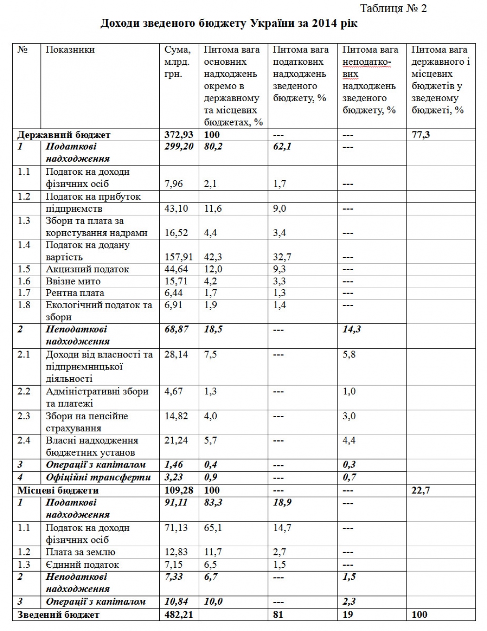 В форматі діючого Бюджетного кодексу, котрий регламентує перелік джерел надходжень до державного і місцевих бюджетів ми маємо співвідношення за доходами відповідно 77 % і 23 % (Таблиця № 2). Це важливі показники, але не достатньо промовисті з точки зору отримання потрібної кількості благ і повноти послуг кінцевими реципієнтами, якими є всі наші громадяни. Державний бюджет – це не тільки механізм перерозподілу зібраних податків і зароблених коштів на користь відповідних галузей, це ще фонд, з якого фінансують важливі місцеві та загальнонаціональні програми розвитку. Багато таких програм мають надзвичайне соціальне і державне значення тому вони фінансуються завжди, навіть за умови бюджетного дефіциту, який закривається запозиченнями. Місцеві бюджети також отримують ці запозичення через міжбюджетні трансферти в знеособленому вигляді як звичайні субвенції і дотації, які в свою чергу є важливим механізмом реалізації державних гарантій по забезпеченню єдиних мінімальних соціальних стандартів на всій території країни. Тому, при визначені кількісних пропорцій місцевих і державного бюджетів у зведеному, за основу слід брати саме витратну частину.