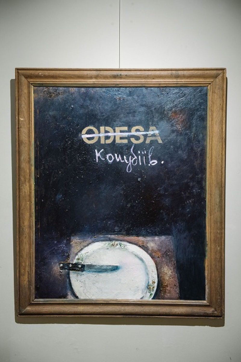 Одесский художник Жалобнюк, про общественно-политический путь которого я уже писал в июне (художник сам по себе при этом скорее хороший, конечно), метеором ворвался в последний период в ряды дерусификаторов-деколонизаторов. Вот его картина с выставки «Випромінювання» в столице.
