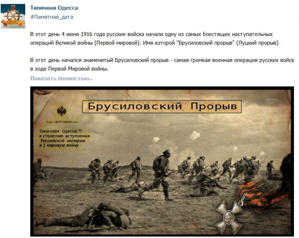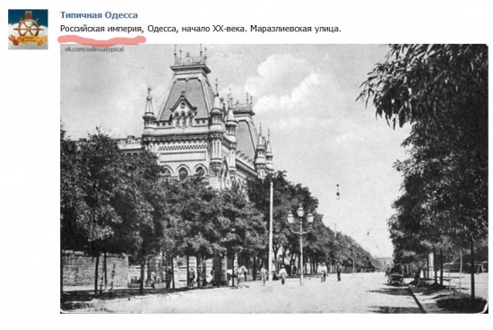 Чуть менее года назад в одесских соцсетях появился еще один одесский паблик «Типичная Одесса». Название слизано с популярного «Типичного Киева». Вначале все было как у всех — одесские дворики, котики, новости, содранные из СМИ, без указания источника. На сегодня паблик Вконтакте набрал уже почти 8000 подписчиков и стали появляться посты о российской истории, ретро фото Одессы всегда начинаюся со слов «Российская империя», а недавнее назначение Саакашвили губернатором вообще качнуло админов на выпуск соответствующей фотожабы. Проанализировав контент, можно утверждать, что он довольно качественный, используется работа дизайнера. - Совпадение? Не думаю! (с) ---------------------------------------------------------------------------- -------------------------------------------------------- |